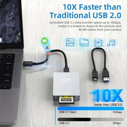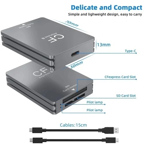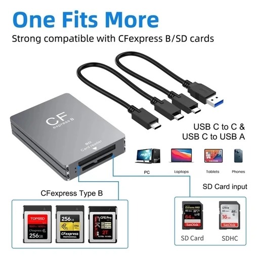 این کارتخوان حرفهای با پشتیبانی از CFexpress Type B و کارتهای SD، مناسب برای انتقال سریع و مطمئن اطلاعات از دوربینها، کامپیوتر و لپتاپ است. اگر با دوربینهای حرفهای عکاسی یا فیلمبرداری کار میکنید و نیاز به جابجایی سریع فایلهای حجیم دارید، این کارتخوان انتخاب بسیار خوبی است.