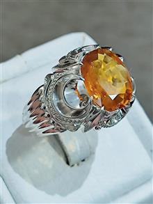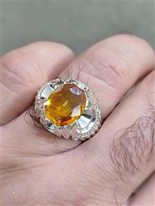 انگشتر زیبای یاقوت زرد طبیعی خوش رنگبه وزن 6/25 قیراط با شناسنامه معتبر رکاب نقره کار دست استاد فیاضی سایز 63