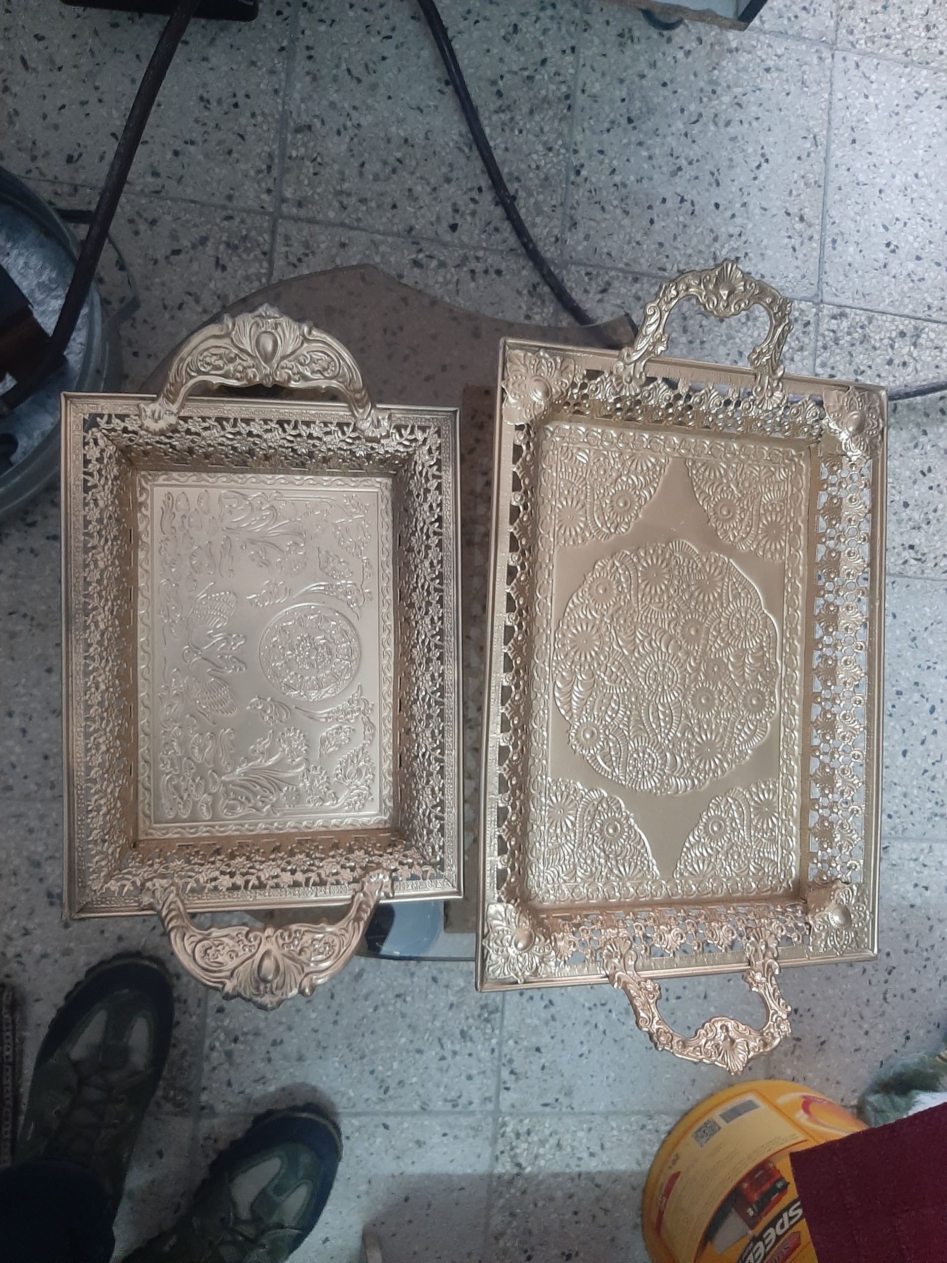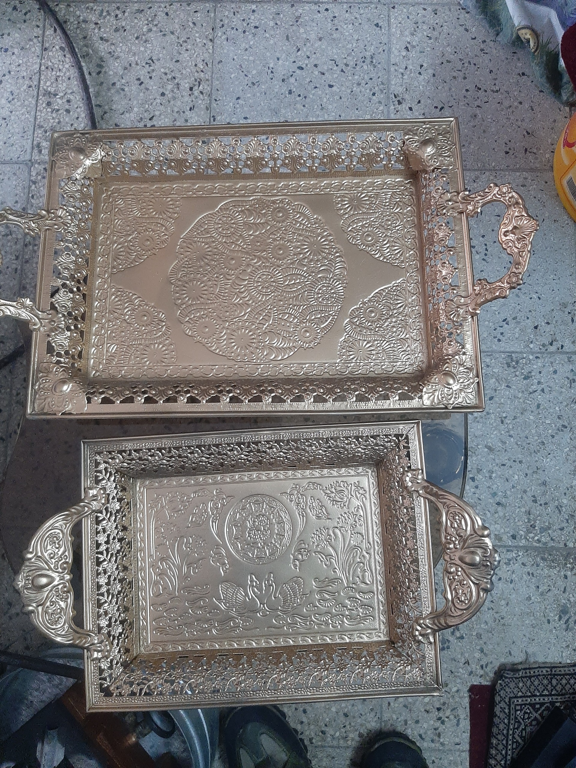 2 عدد سینی فلزی طلایی 20در30،نو آکبند قیمت فقط 550000هزار تومان و 40 در 30 هر کدام فقط 550هزار تومان هم تکی هم باهم فروخته میشه.