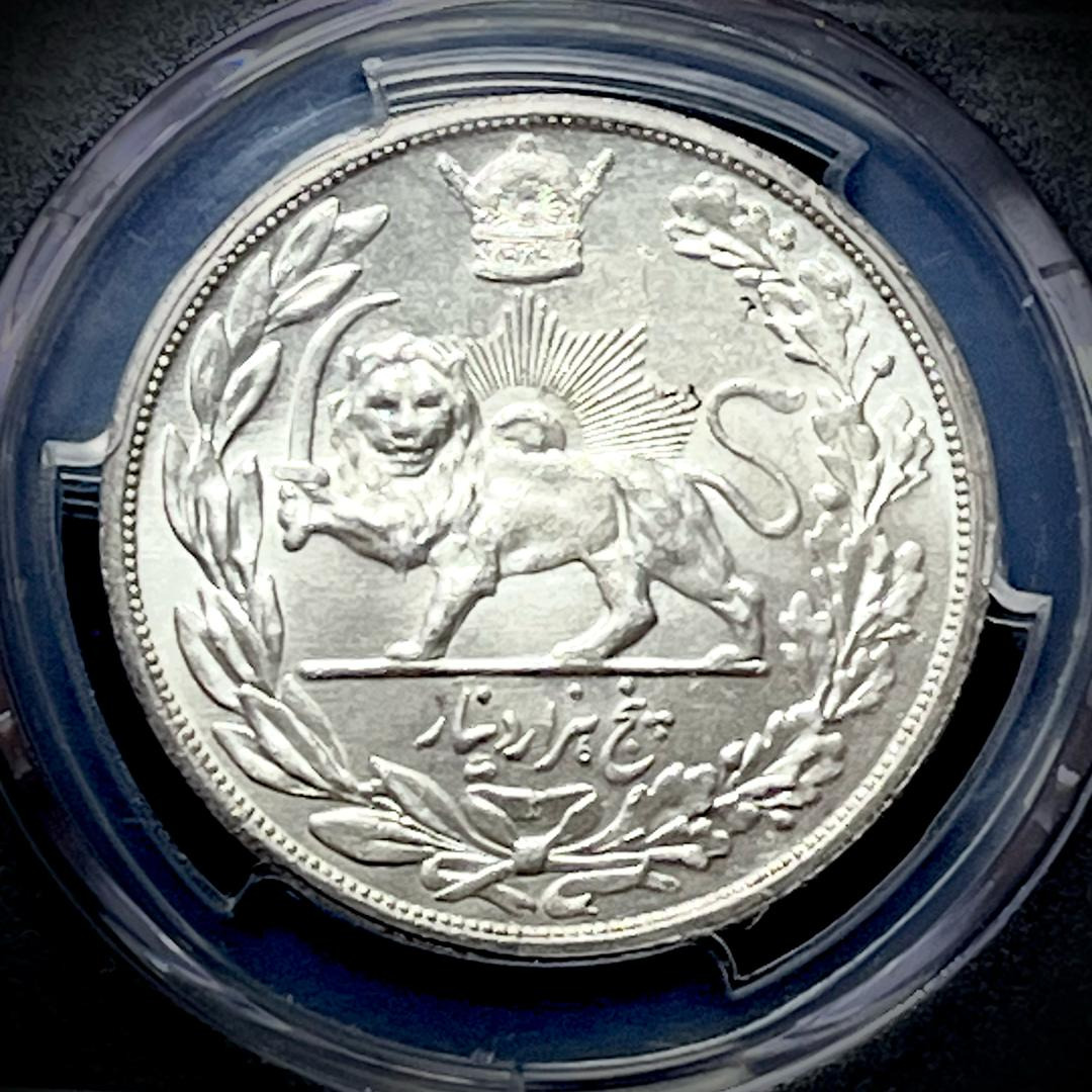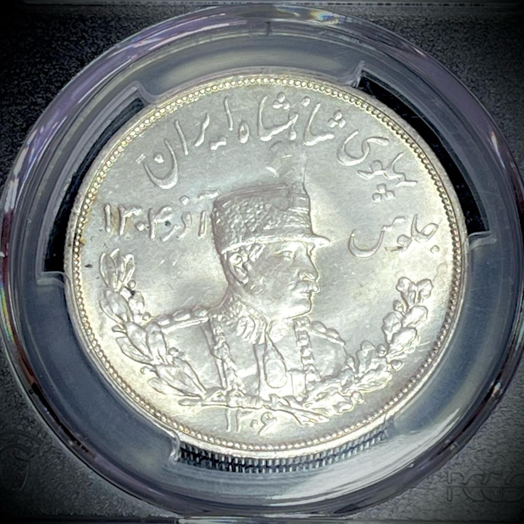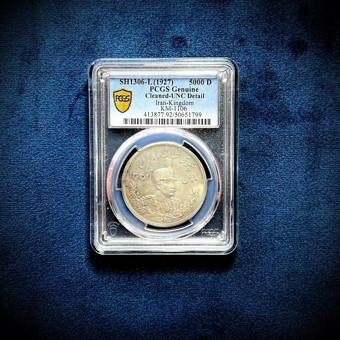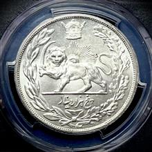 سکه نقره پنجهزار دینار رضا شاه یا جلوس گرید شده شرکت PCGS با کیفیت سوپر بانکی