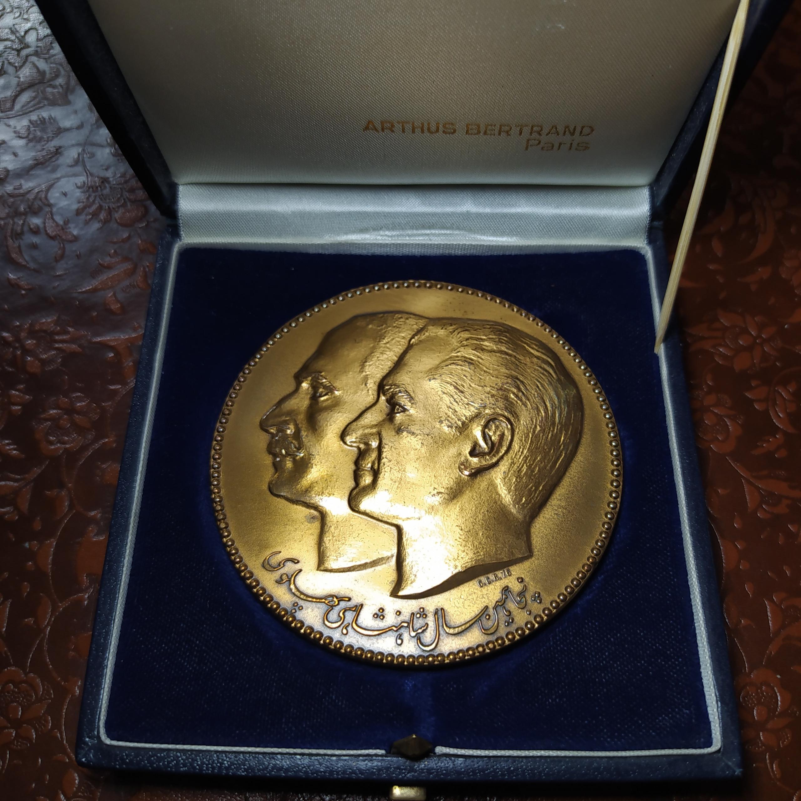 یادبود فوق العاده زیبا و ارزشمند بانک سپه با تصویر رضا شاه و محمد رضا شاه پهلوی با کیفیت بی نظیر و استثنایی سوپر بانکی همراه با لعاب و جعبه فابریک