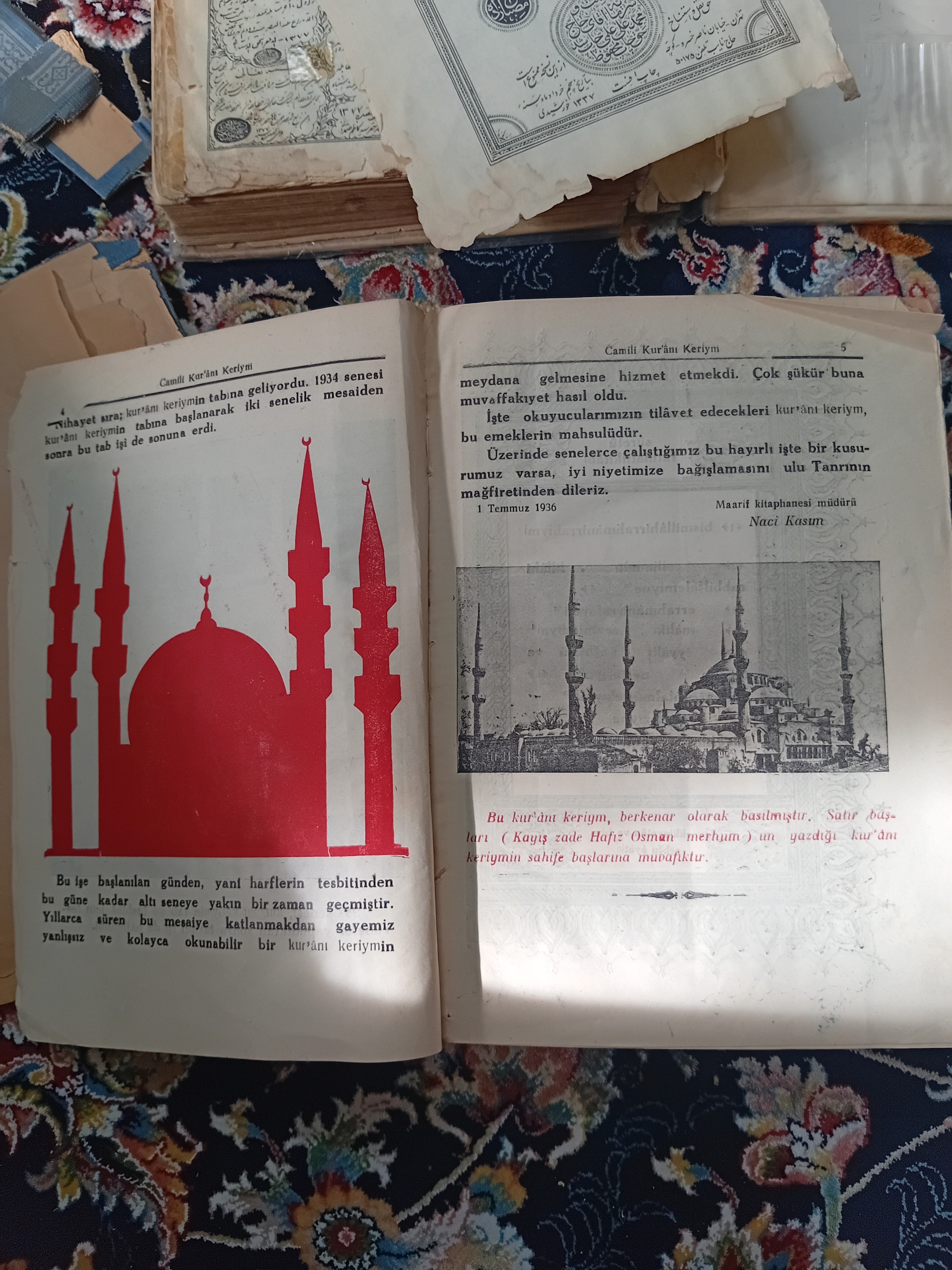 تالیف  و تهیه این قران دوسال زمان برده از 1934 تا 1936 و به صورت چاپ سنگی میباشد که در ان تصاویری مثل مسجد ایا صوفیه قدیم ترکیه و... وجود دارد