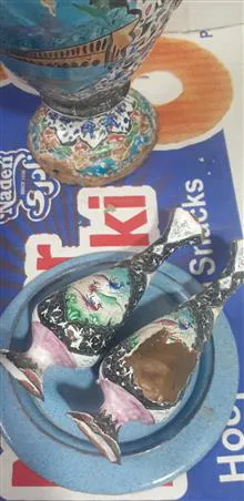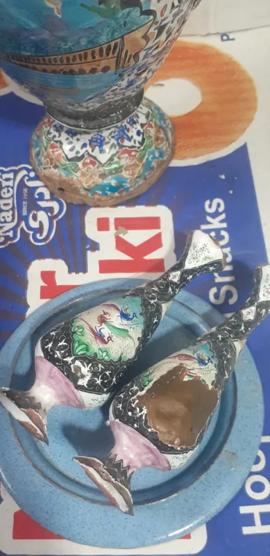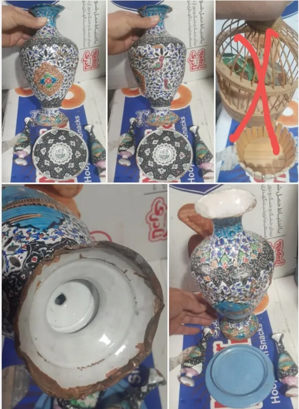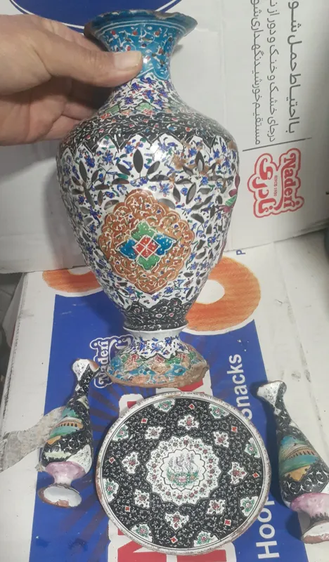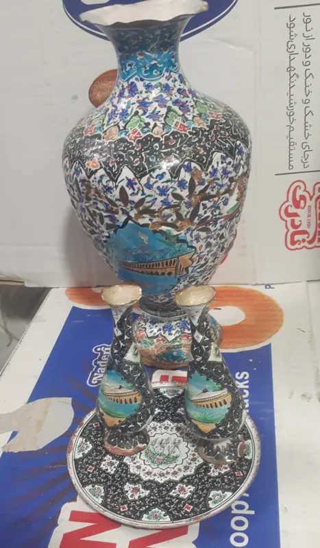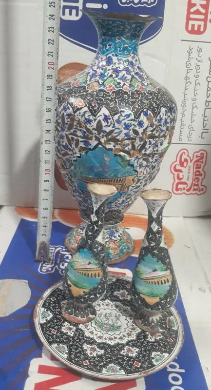 ست گلدان قدیمی مسی مینا کاری توضیح