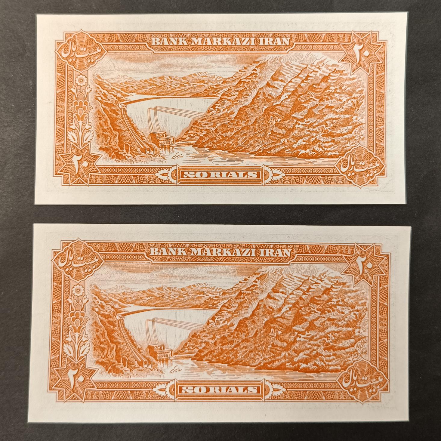 جفت اسکناس شاهی 20 ریال شانه پهن امضا خوش کیش