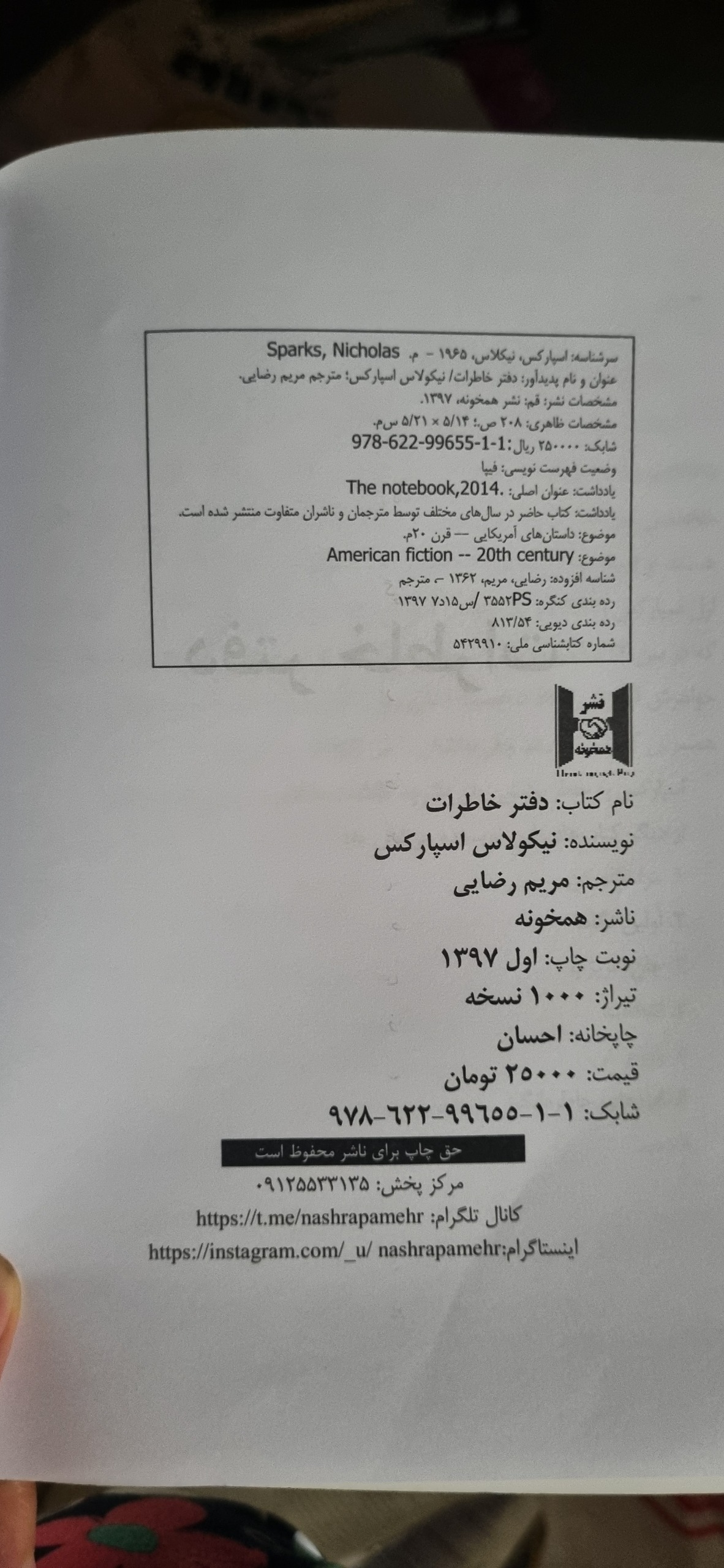 کتاب دفتر خاطرات نیکولاس اسپارکس