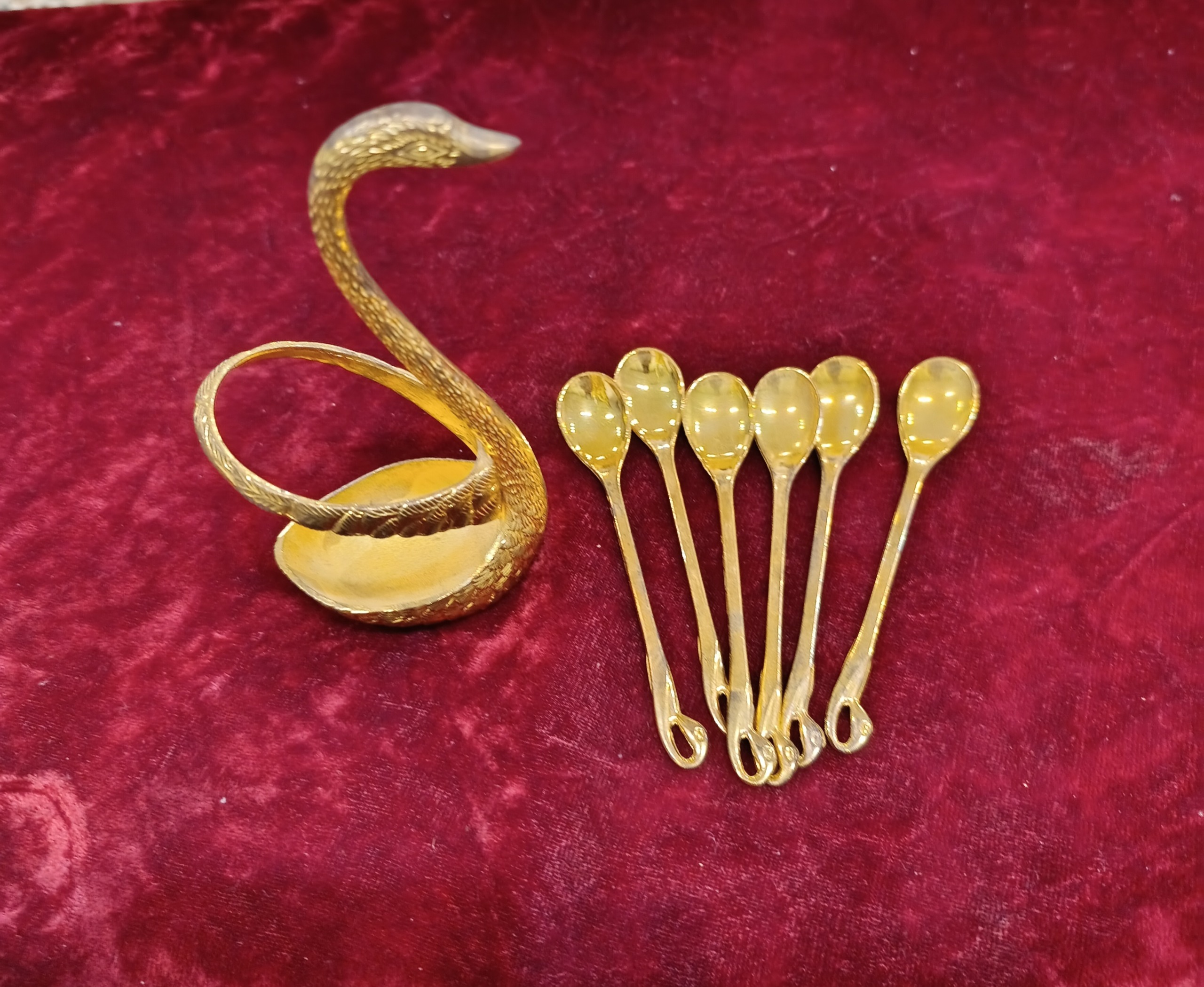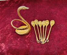 یکدست قاشق چایخوری با استند برنجی آبکاری شده وقدیمی