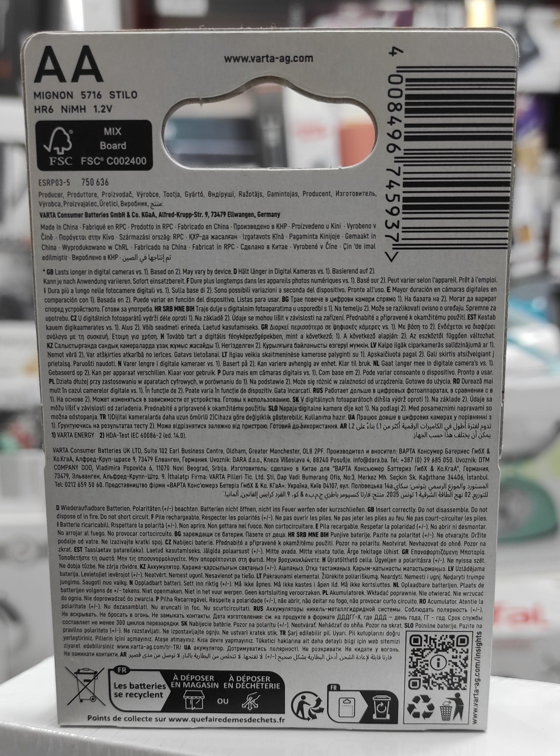 باتری2عددی قلمی شارژی وارتا آلمان 2600 میلی آمپر