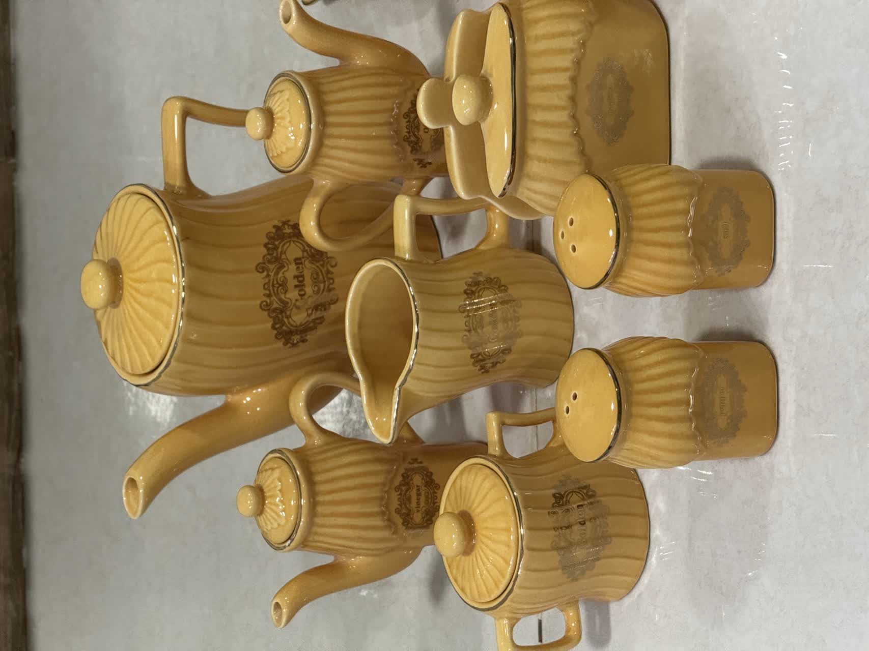 سرویس صبحانه خوری ژاپنی زیبا همراه با چاشنی خوری و جا دستما کاغذی همگی نو هستن کار خاص و کمیاب