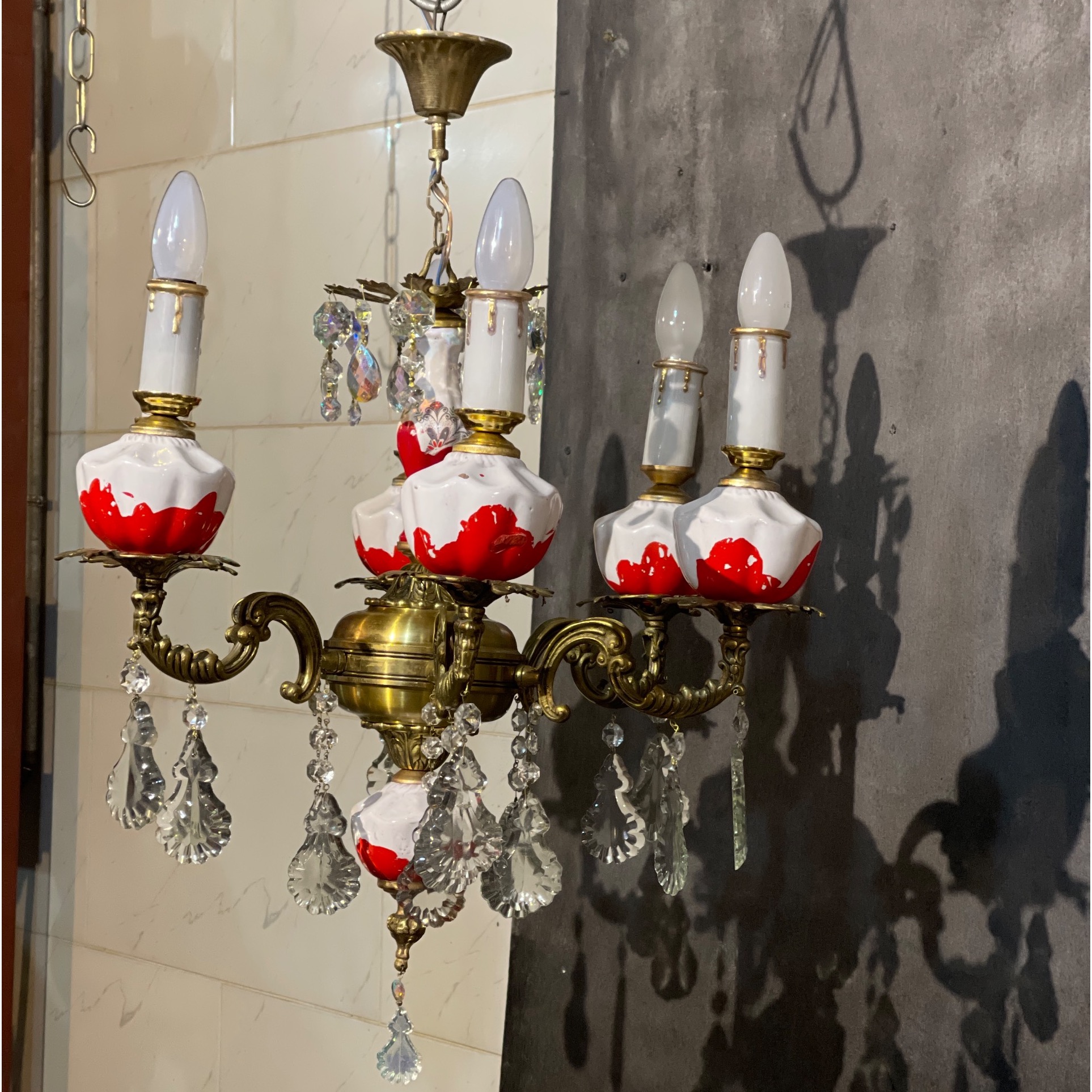 لوستر فوق از جنس برنزی ضخیم استفاده شده مخصوصا طوقه و شاخه ها از عکس زیباتر