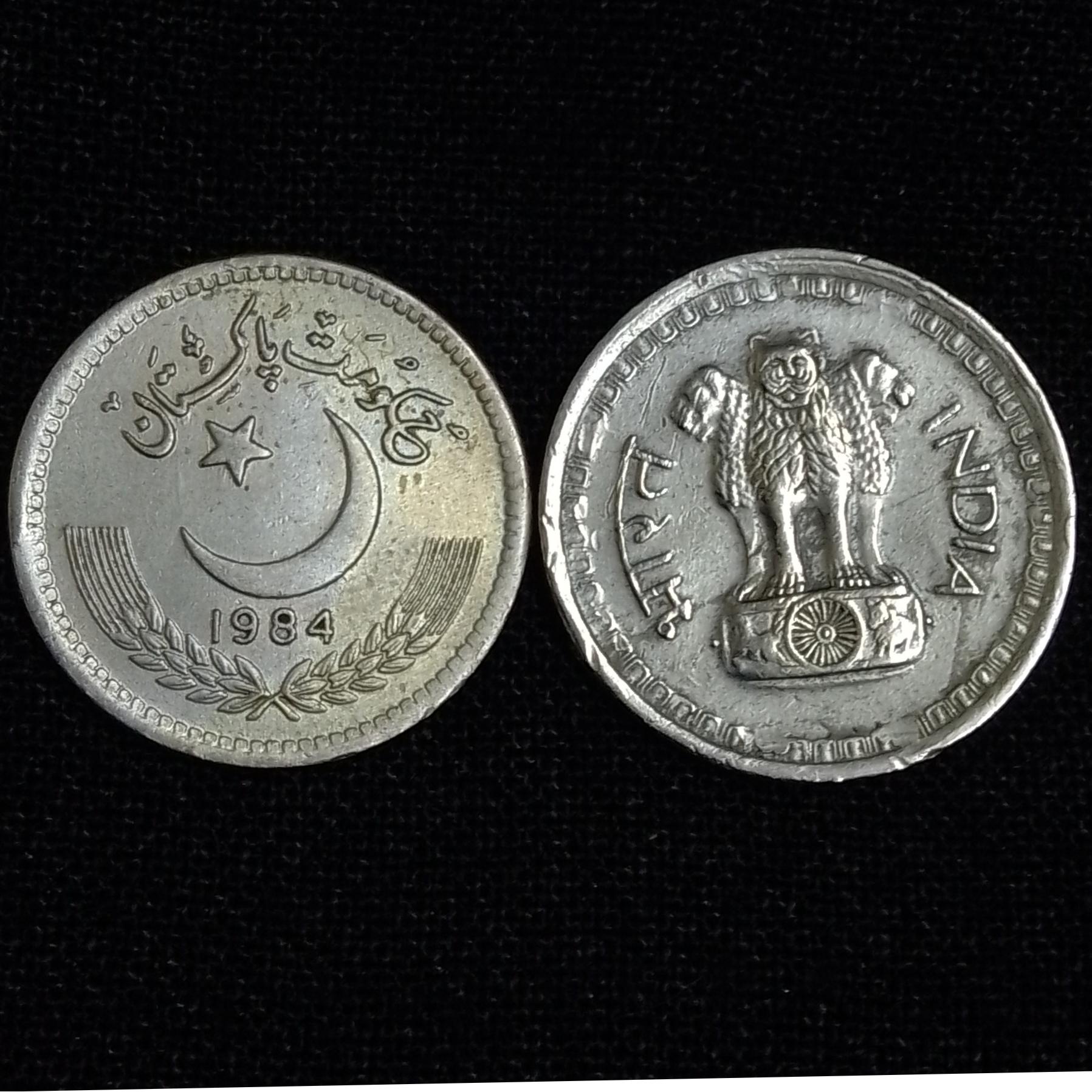 ست دو عددی سکههای 25 پیسه ای هندوستان و پاکستان که سکه پاکستانی در حدنو هستش وسکه هندی کارکرده هستش