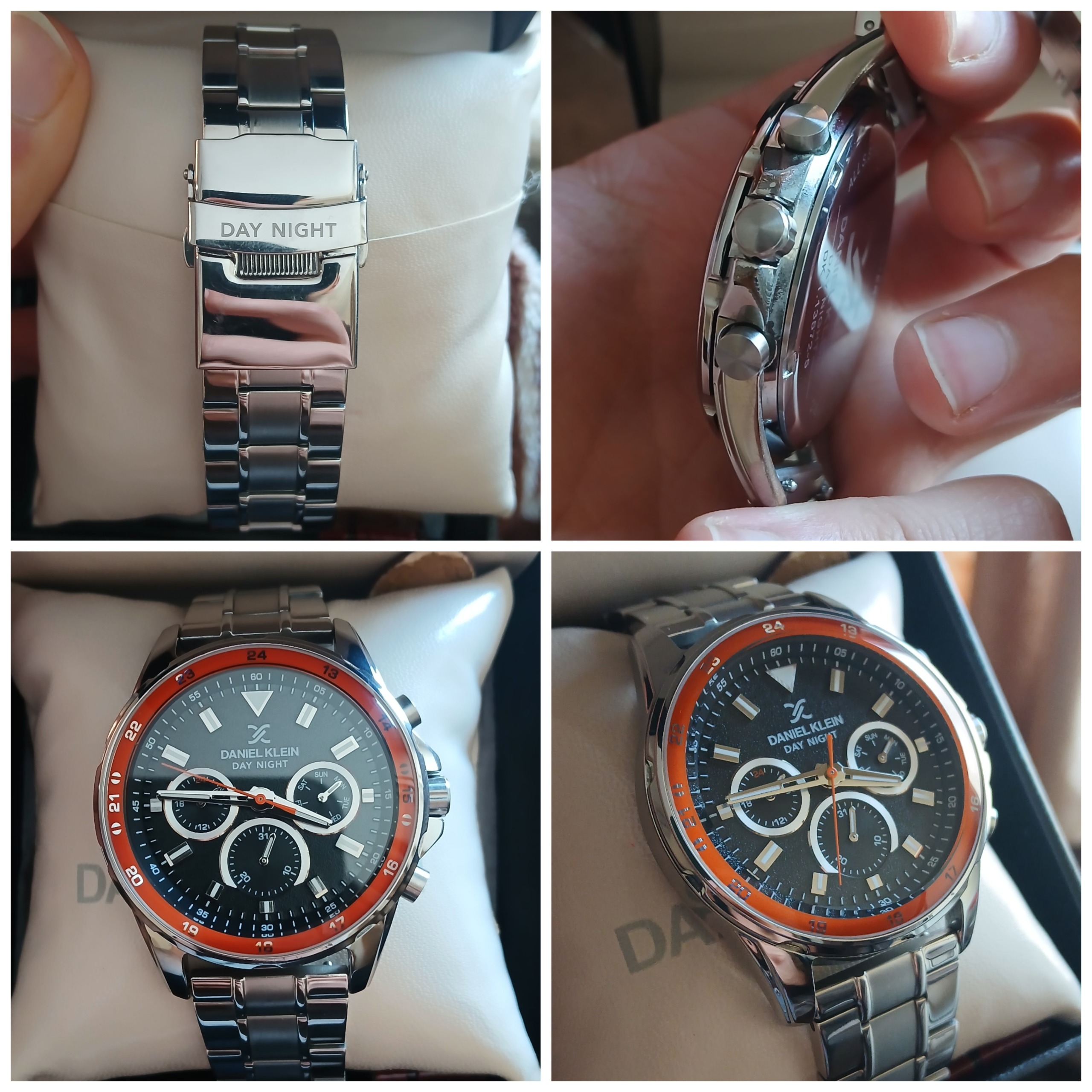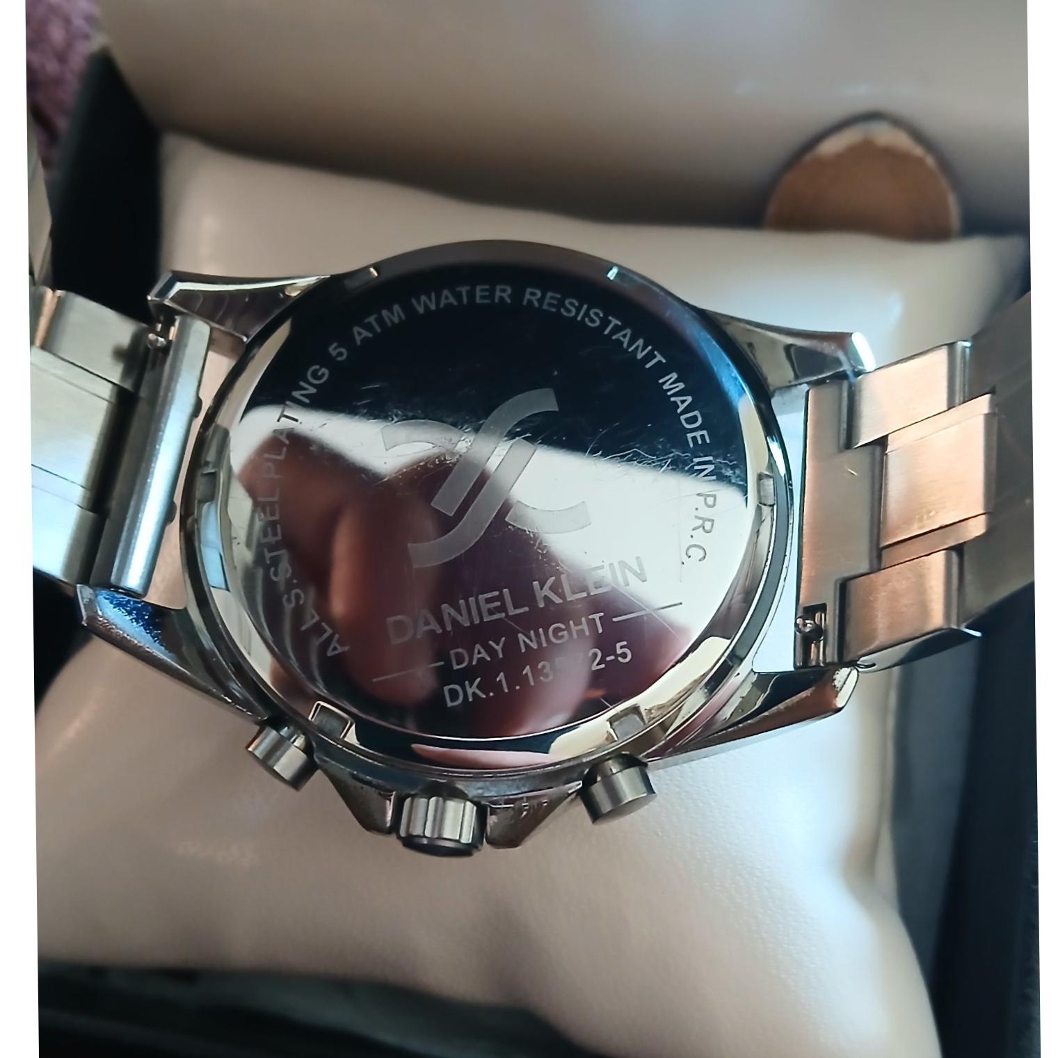 ساعت مچی دنیل کلین مدلDK.1.13572.5 در حد نو خیلی کم استفاده شده همراه جعبه و پک سالم و در حال کار فقط یه خرده رنگ رفتگی روی قاب داره و اگر نه شیشه بدون خط خش هست مطابق تصاویر قیمت نو این ساعت و این برند خیلی بیشتره یه سرچ کنید متوجه می شوید باز هم سوالی بود در خدمتم.