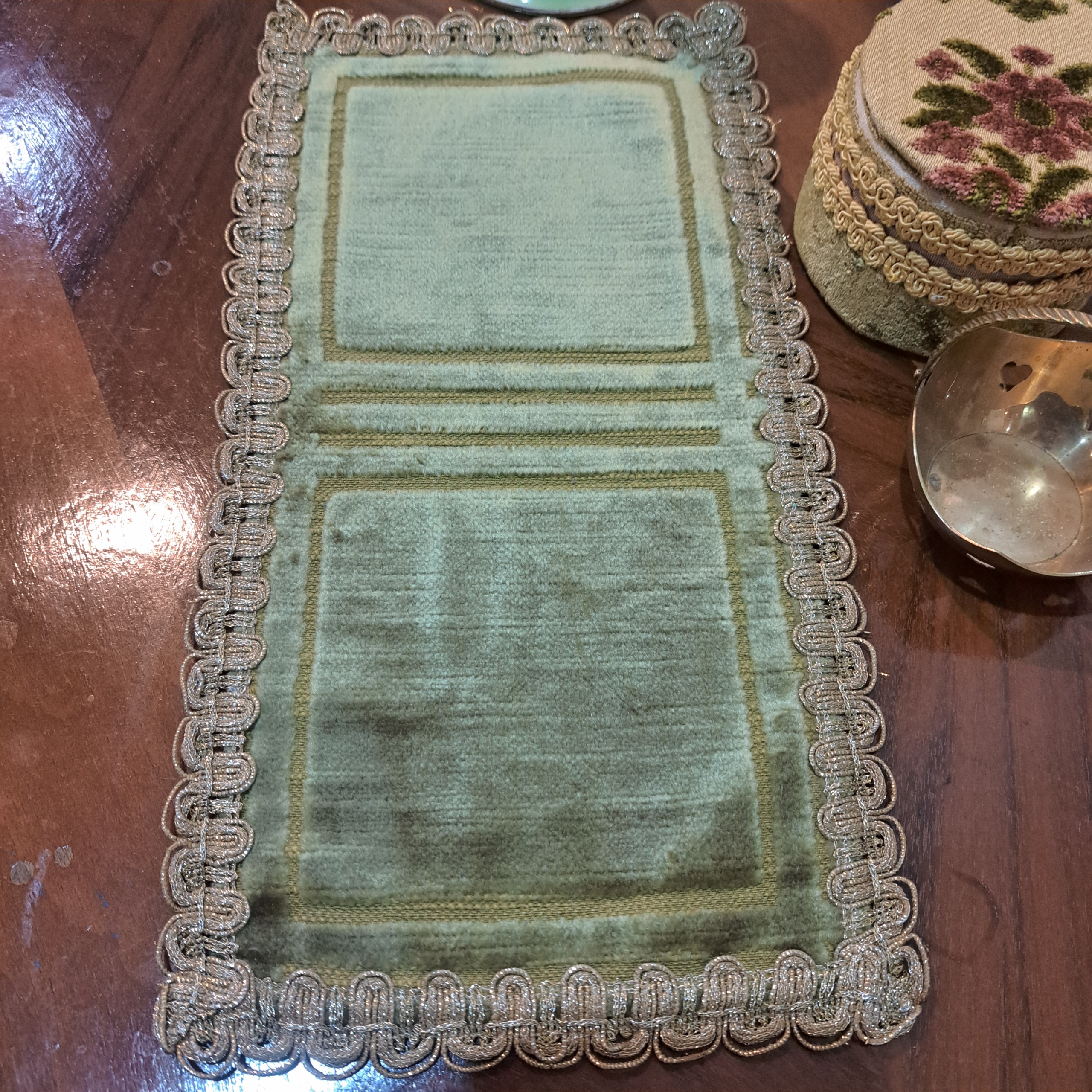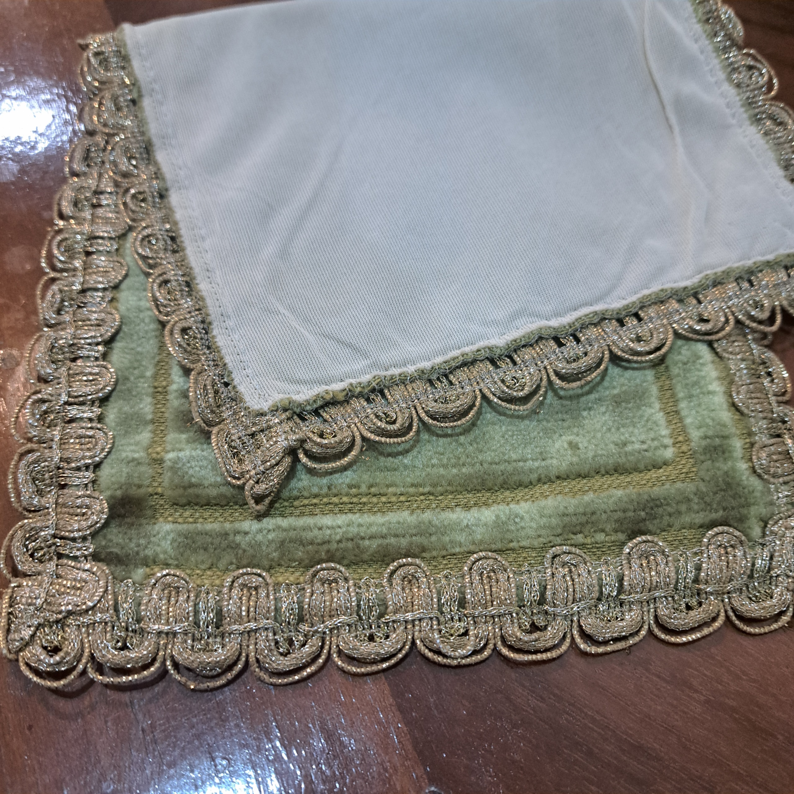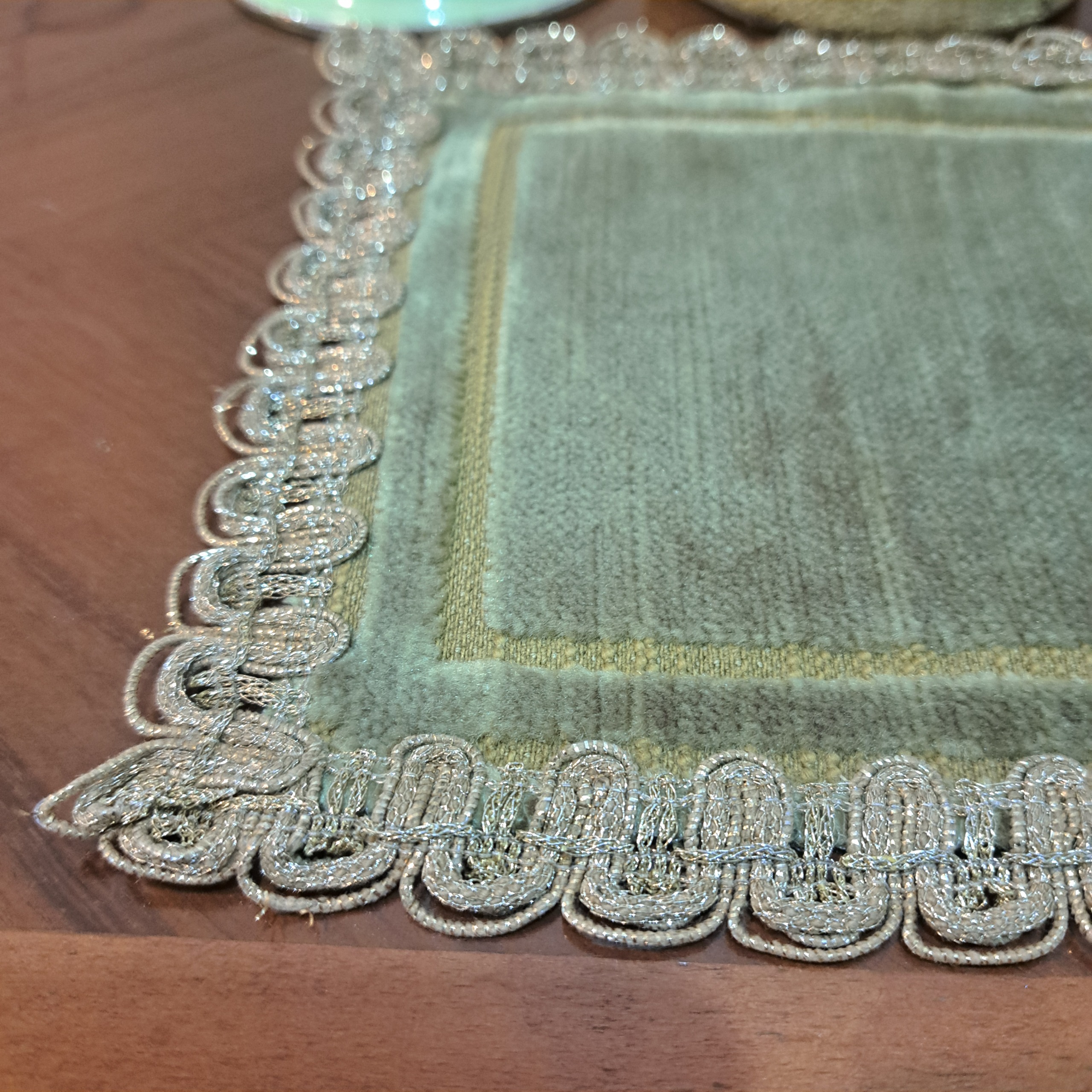 موتیف مخمل خارجی سبز جذاب و پرطرفدار با یراق زیبای طلایی استر دار