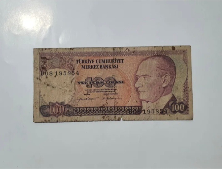 اسکناس 100 لیره ترکیه، کمیاب، سری قدیمی، دهه 70