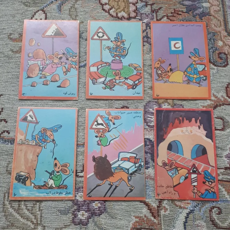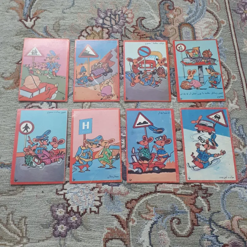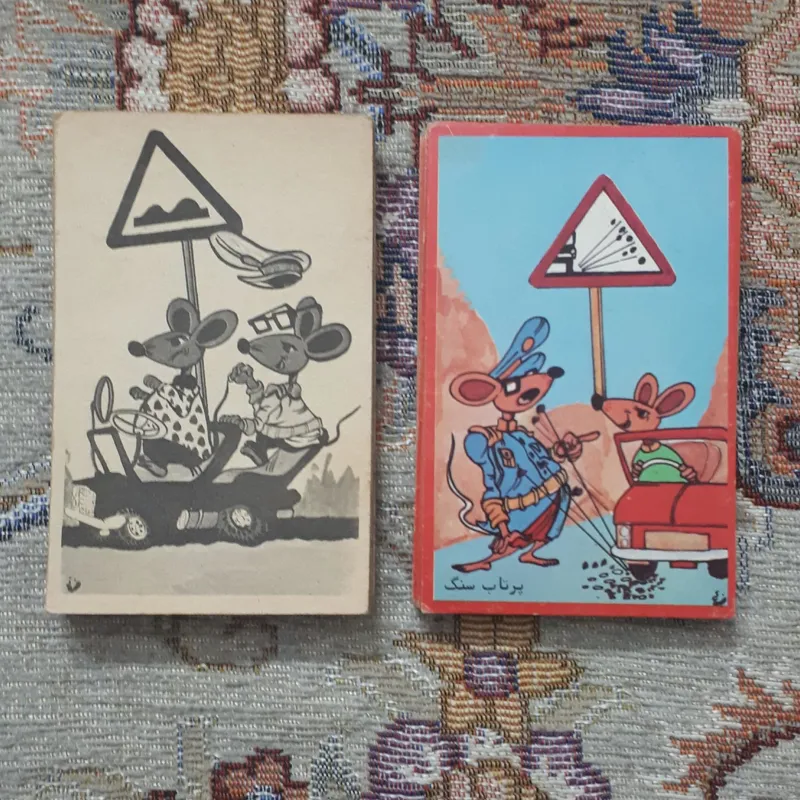 کارت بازی قدیمی علائم رانندگی در شهر موشها