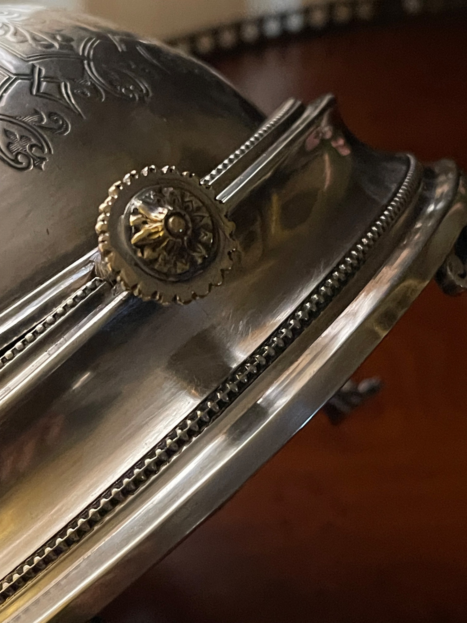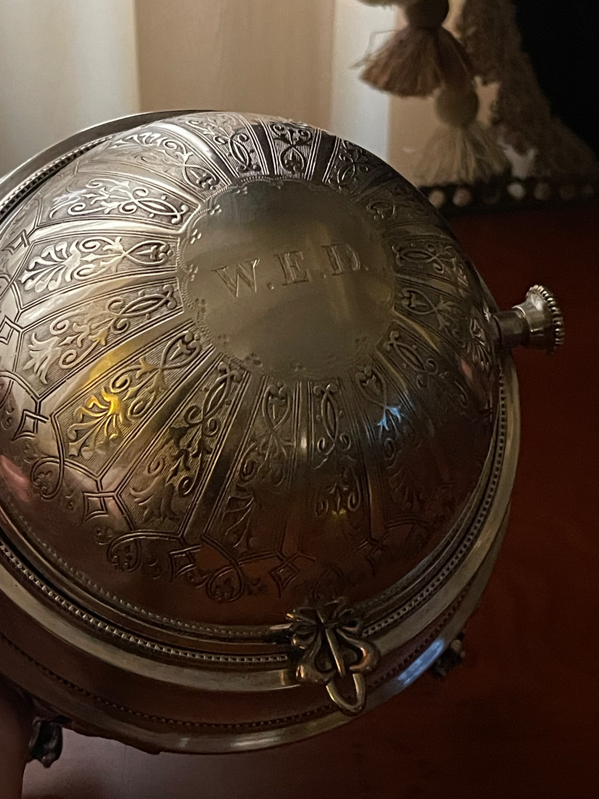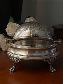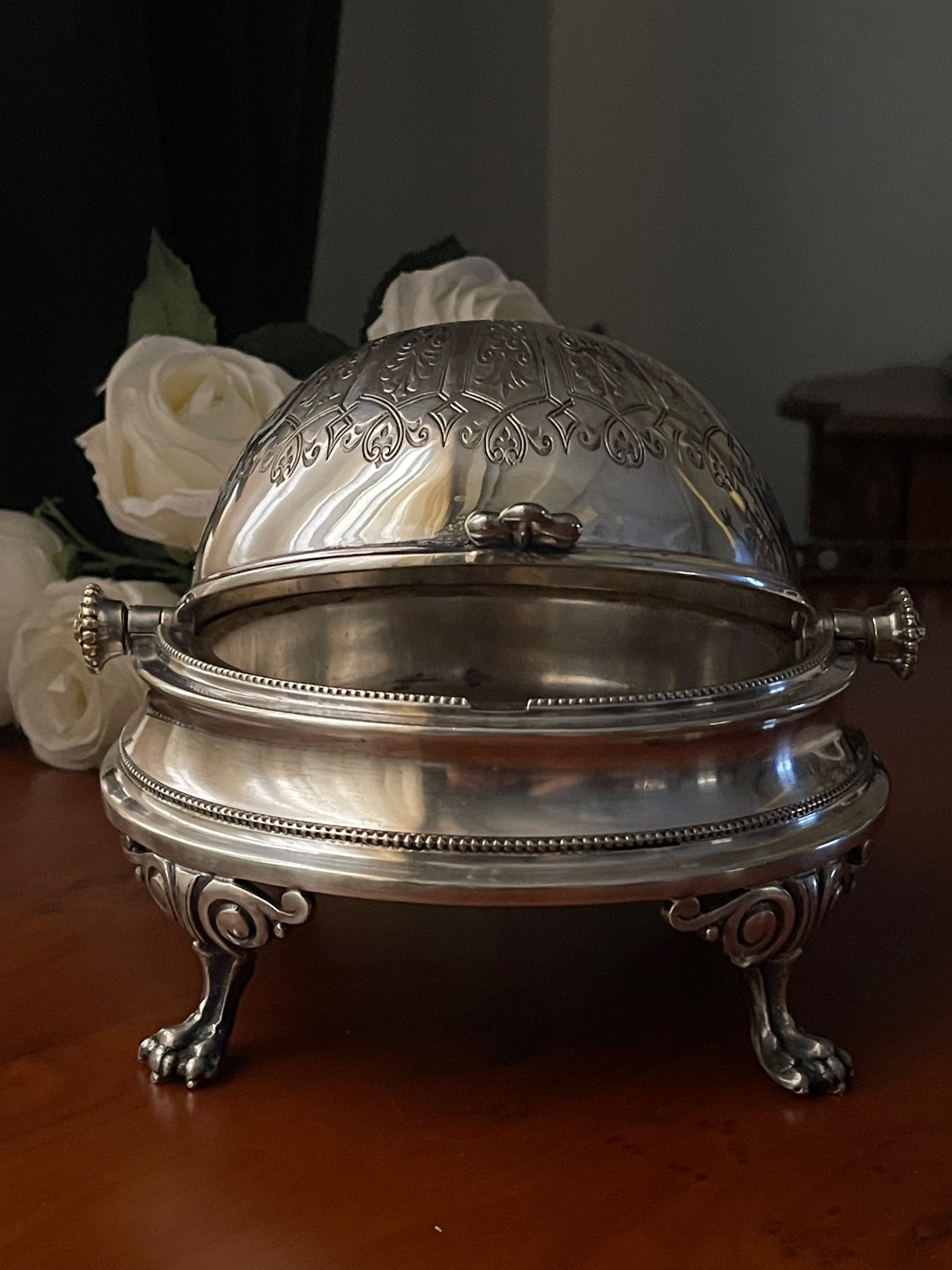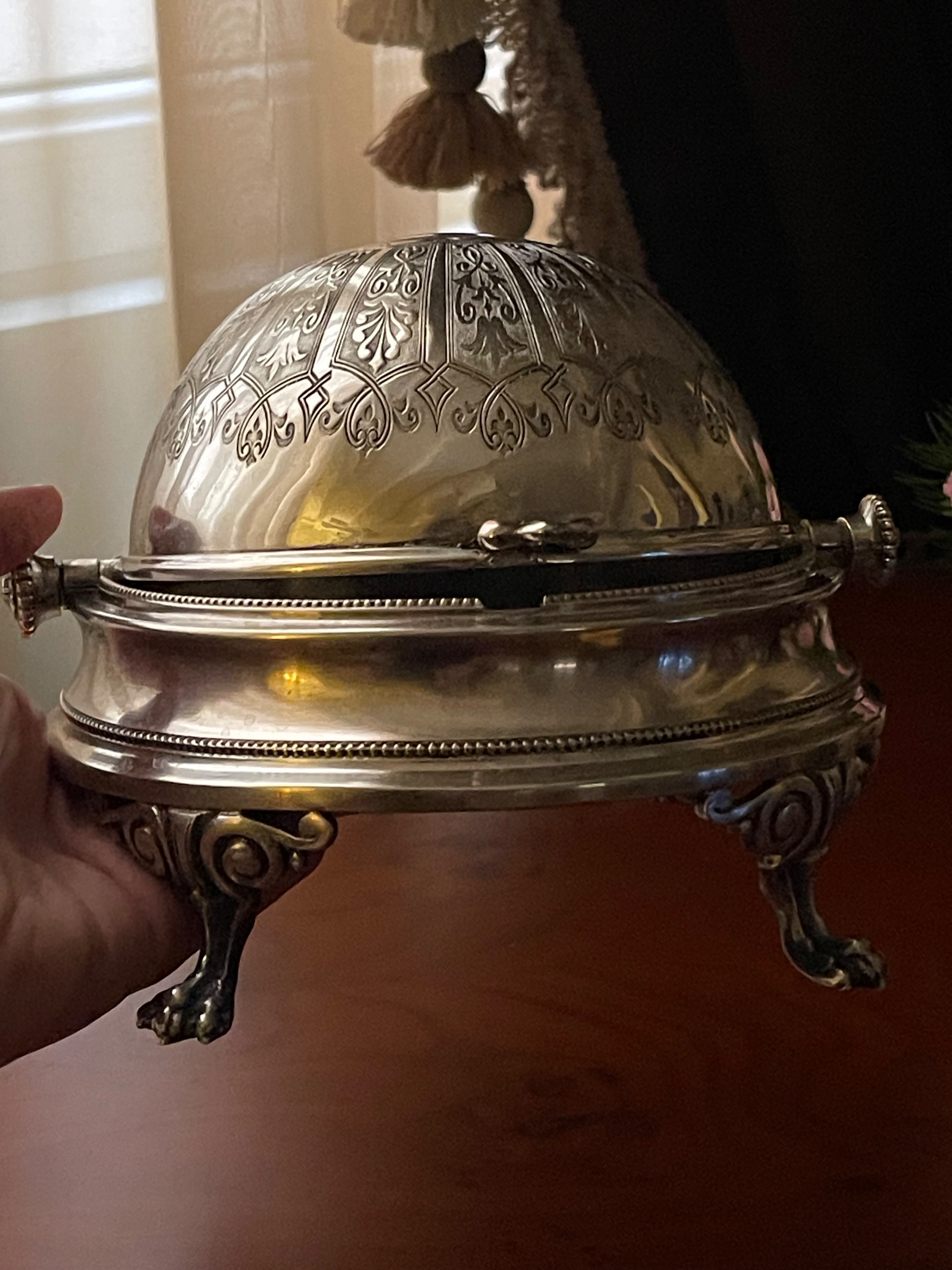 خاویار خوری قطر 18آنتیک وقدیمی سیلورپلیت باروکش نقره سالم و کاربردی