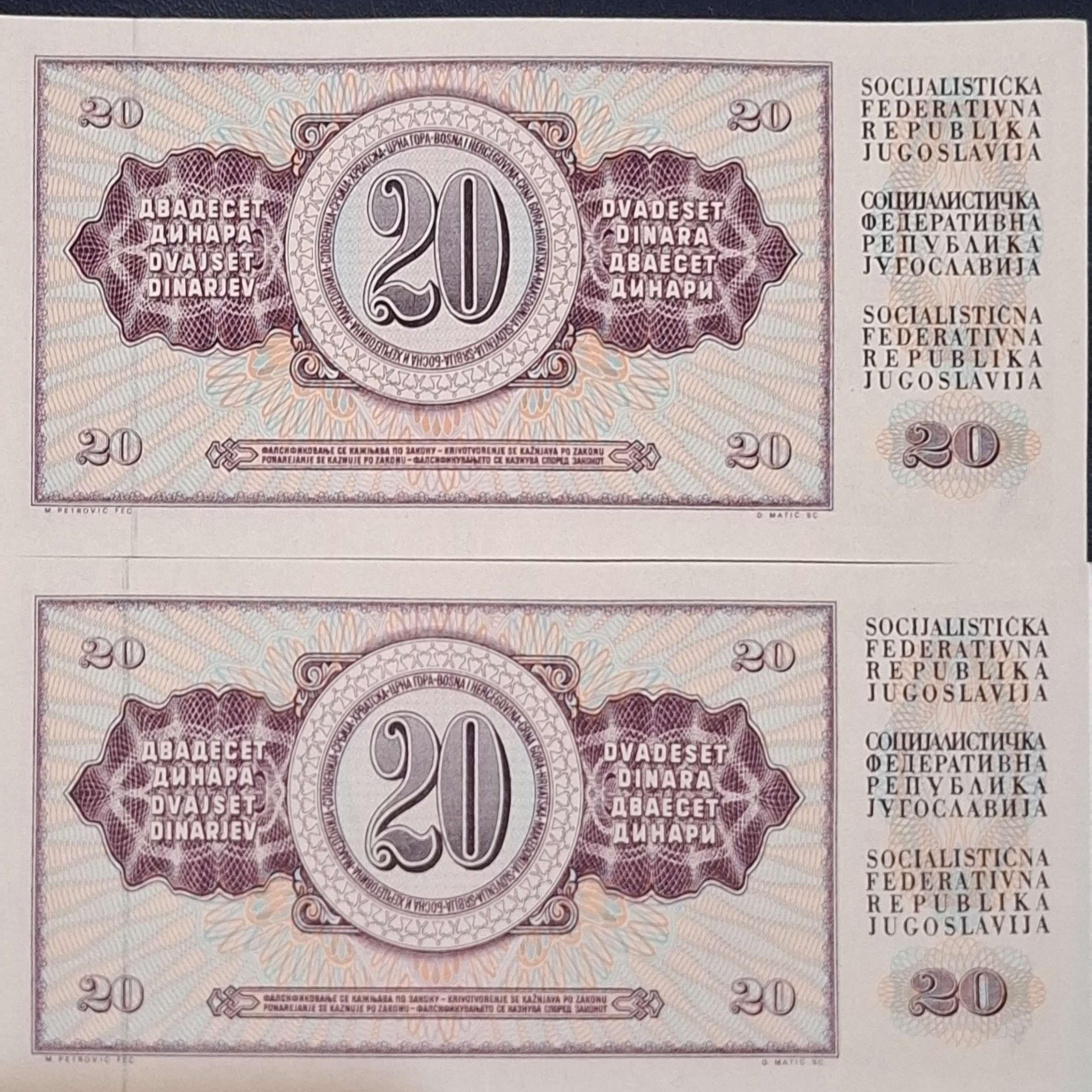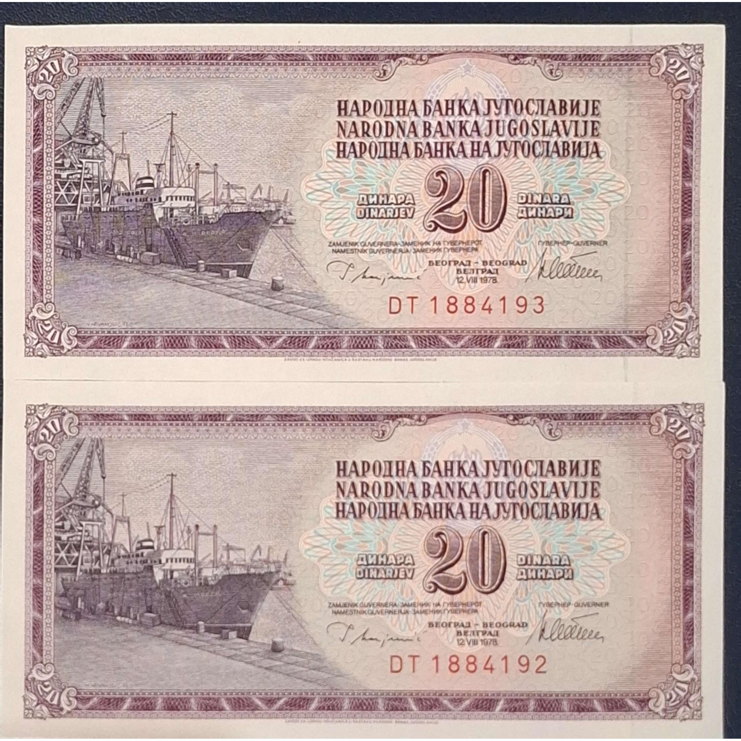 جفت بانکی کلکسیونی و زیبا 20 دینار یوگسلاوی
