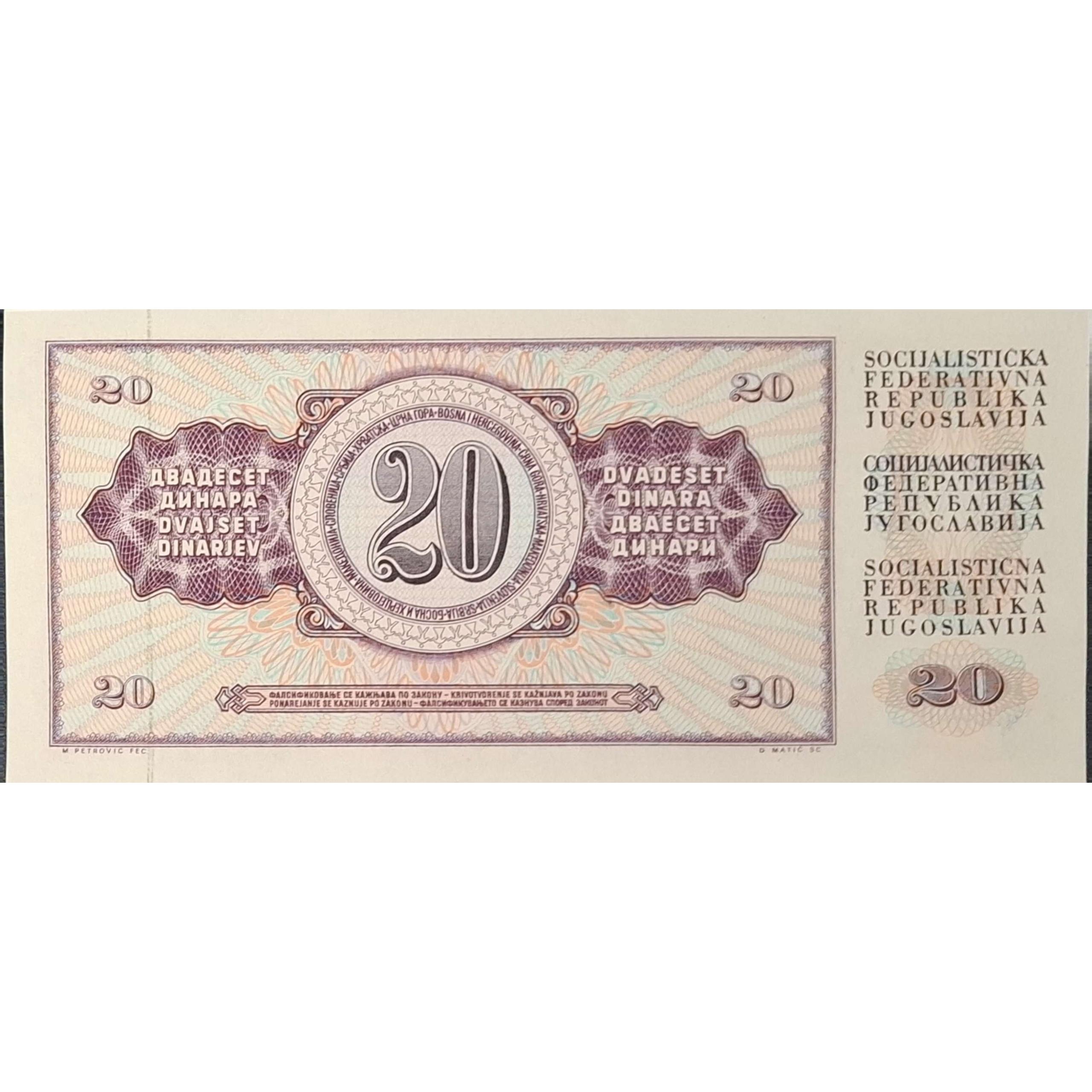 تک اسکناس بانکی کلکسیونی 20 دینار یوگسلاوی