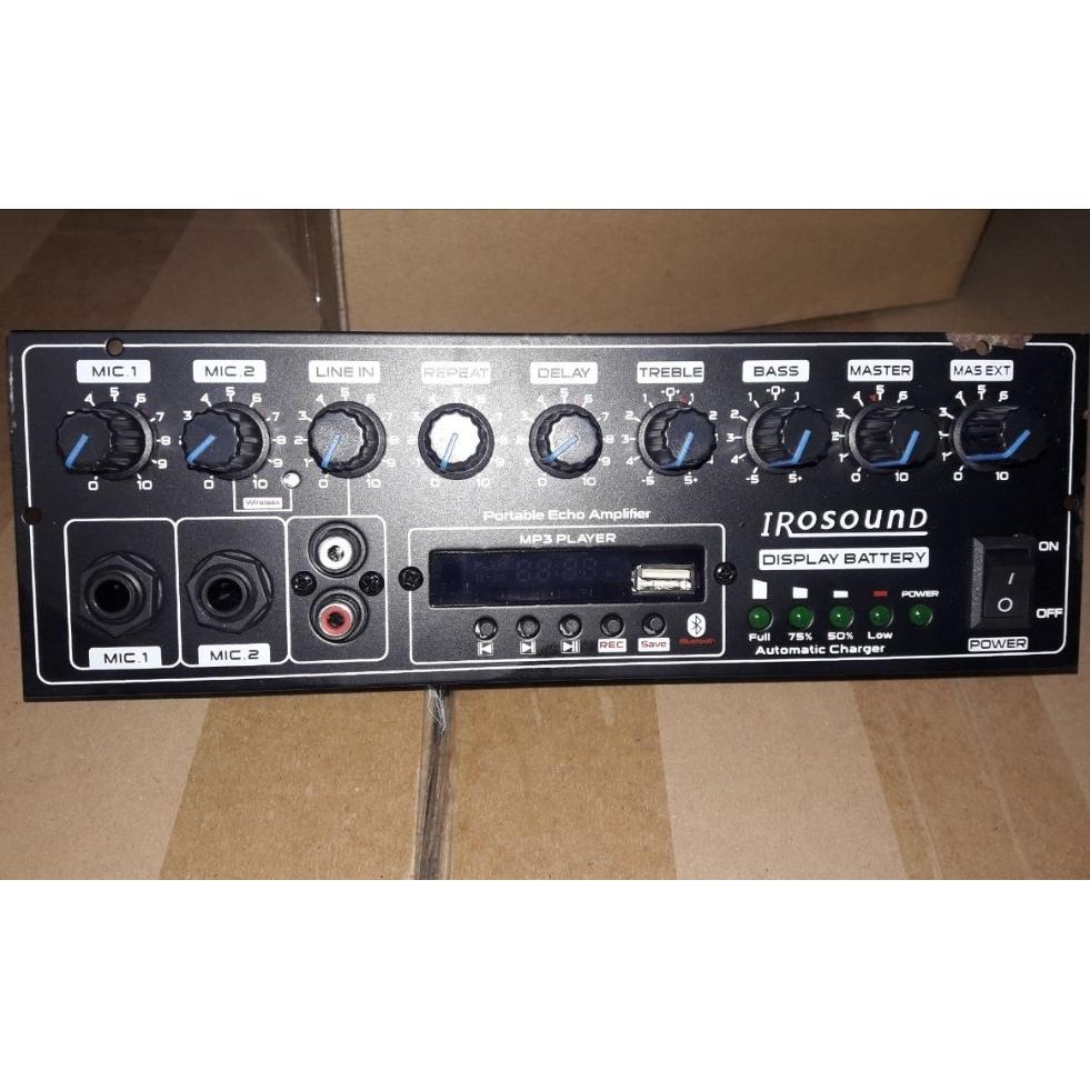 ولومها= میکروفن1/میکروفون 2 /ولوم ماژول بلوتوث/ولوم اکو/ولوم دیلی/باس/تریبل/مستر