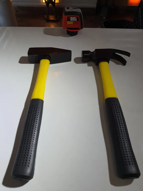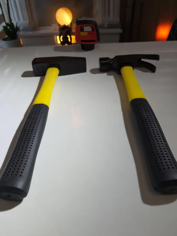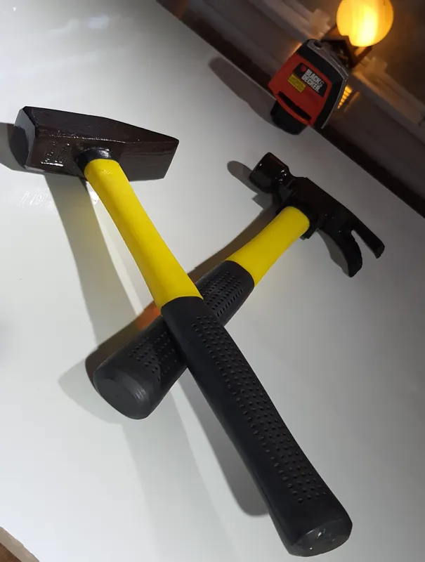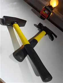 دو عدد چکش فلزی دسته چوبی روکش فایبر گلاس در حد نو یکیش میخکوب و دیگری چکش.