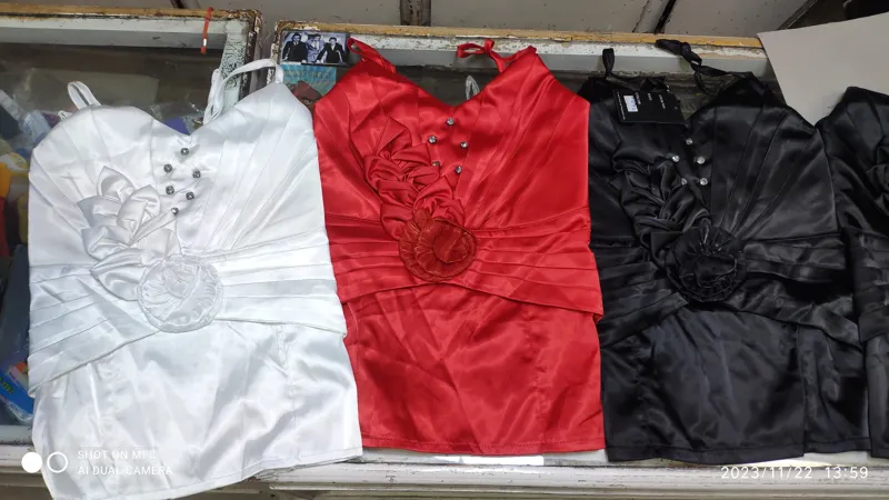 .. تاپ مجلسی زنانه بعضی ها بدون مهره بعضی ها با مهره. سایز.. فری سایز هستند. سایز عرض 30 تا 40-45 کش میاد استریج هستند. قد هم45 تا بند روی دوش.. ارتفاع بند 18 تا 25 هم احتمالا میشه جا داره.لطفا قبل از خرید از موجود بودن رنگ مطمئن بشید. با سپاس