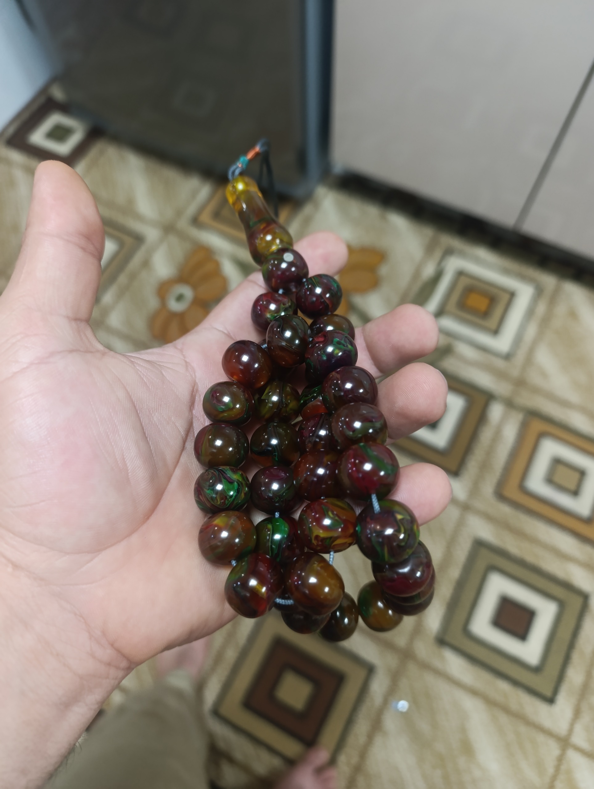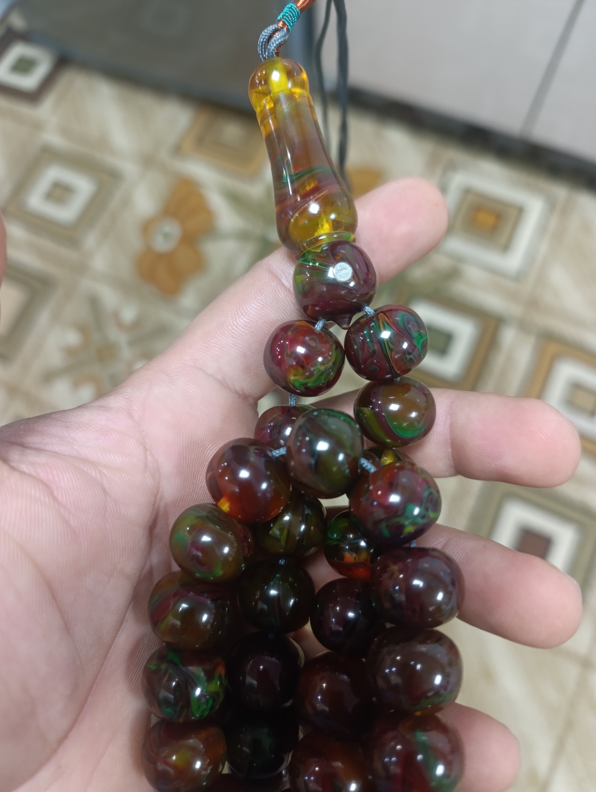 تسبیح کهربا پرچمی استاد نظیر بسیار تک و زیبا