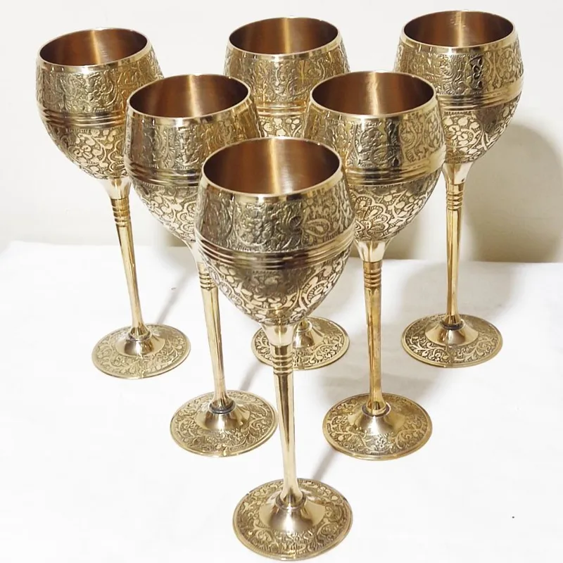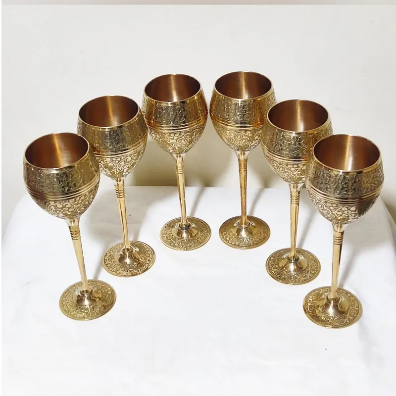 ست 6 عددی جام تمام برنجی ساخت هندوستان با ارتفاع 22/5 سانتیمتر مدل تمام قلم دست با طرح طاووس و با کیفیت بسیار بالا و ضخیم با سطح کیفیتی بی نظیر و درجه یک مناسب استفاده دائم و پذیرایی و قابل شستشو بدون تغییر رنگ