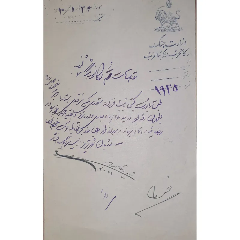 نامه قدیمی با امضا نایب سرهنگ افشار دژبان شهر تبریز 1310