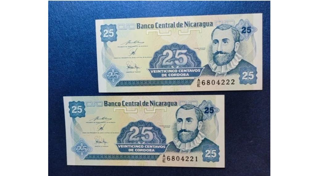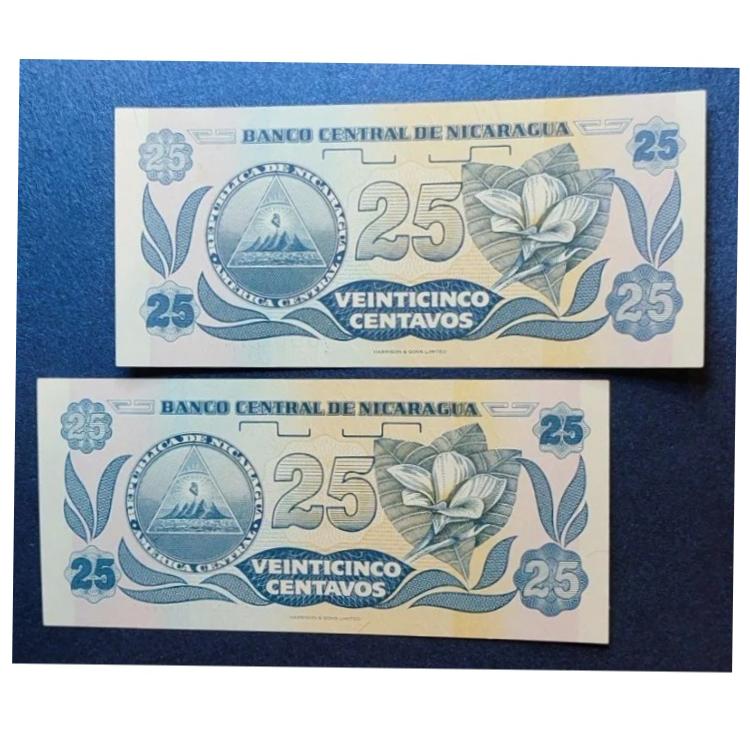 جفت اسکناس بانکی کمیاب نیکاراگوئه 25 شماره قشنگ
