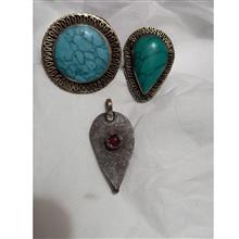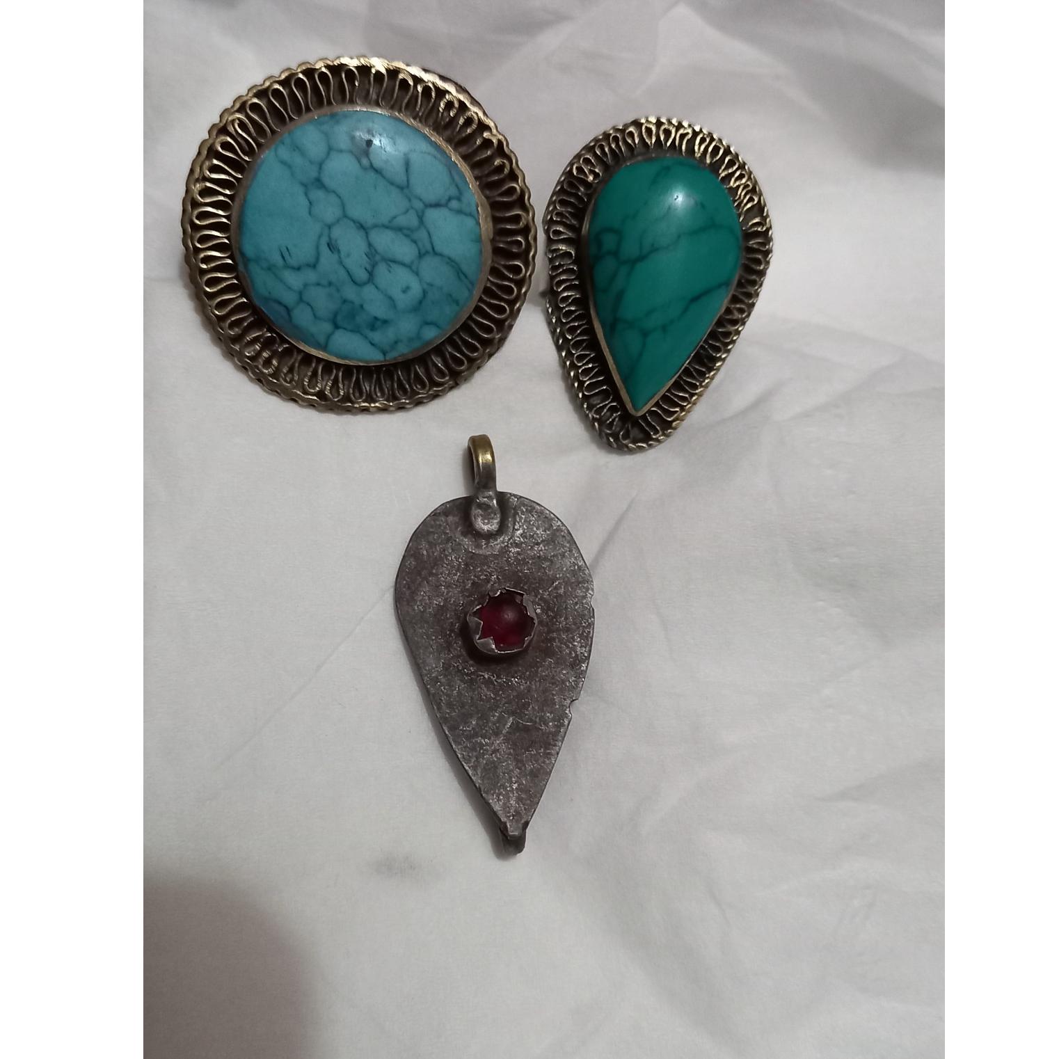 2عدد انگشتر ورشو فیروزه صنعتی وگردنی کهنه قاجاری قدیمی یا نگین یاقوت مصنوعی احتمال زیاد کارهی کلکسیونی وزیبا