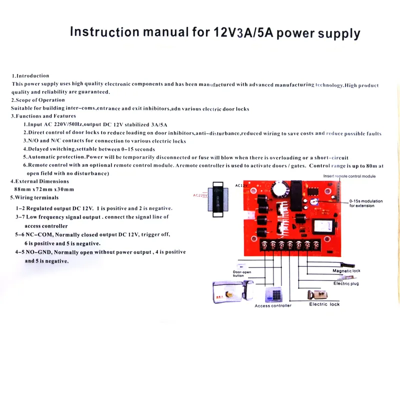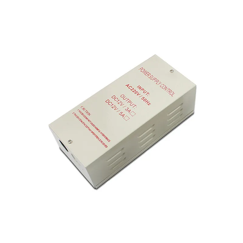 این محصول منبع تغذیه مخصوص دستگاه کنترل تردد RFID می باشد.در این دستگاه کاهش ولتاژ شهر از 220 به 12 ولت توسط ترانس انجام میشود و تامین برق و کنترل دستگاه RFID به کمک برد کنترلی این منبع تغذیه انجام میشود.ویژگی این محصول علاوه بر تامین تغذیه دستگاه RFID این است که به تنهایی و به کمک اتصال کلید PUSH BUTTON میتوانید قفل برقی درب را فرمان دهید و با فرمان به برد ، قفل عمل کرده؛ به کمک پتانسیومتر روی برد میتوانید تایم وصل مجدد قفل را از 0 الی 15 ثانیه تنظیم کنید.این عمل سیم کشی شما را کاهش میدهد.همچنین در قسمتی از برد دارای پین جهت اتصال به ماژول کنترل از راه دور RF است که بتوانید از راه دور و به کمک ریموت کنترل به برد کنترل منبع تغذیه فرمان دهید.(تامین این ماژول RF به عهده خریدار است) این برد به کمک فیوز تعبیه شده روی آن ، دستگاه شما را از اتصال کوتاه و اضافه جریان محافظت میکند.خروجی تغذیه که به قفل برقی وصل میگردد رله ای است و تیغه های رله شامل NC و NO یعنی نرمال بسته و نرمال باز و COMیا GND نیز در دسترس است.پین های روی برد کنترل که در دسترس شما هستند شامل :12V GND PUSH NO GND NC PUSH2 می باشد.حداکثر جریان خروجی تغذیه 3 آمپر است و بدنه منبع تغذیه کاملا فلزی و مرغوب می باشد