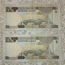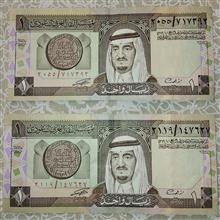دو برگ اسکناس یک ریالی عربستان سعودی