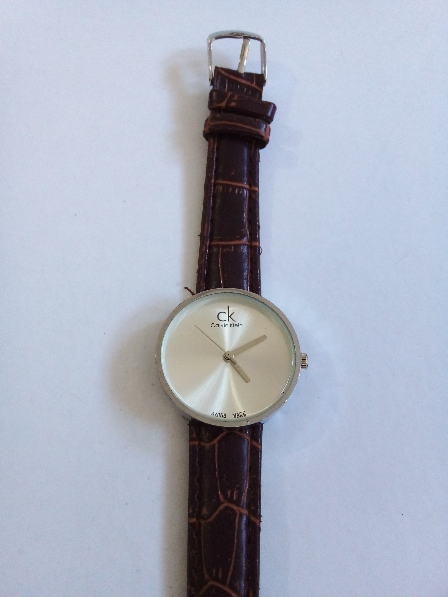 درود وروز بخیر خدمت عزیزان کاربر و سایت محترم ایسام  . ساعت مچی مردانه CK با بند چرم قهوه ای طرح پوست ماری وتمیز . دلیل معیوب نوشتن اینه که غیراز عقربه ثانیه شمار بقیه شل هستند  . ساعت کار میکنه وگاهی توقف میکنه  . عزیزان خریدار قبل از اقدام به خرید لطفا وحتمن عکسها را ببینید وتوضیحات را کامل بخوانید وهر سوالی بود در خدمتم وهر عکس مجددی از کالا خواستید ارسال میشود  . بسته بندی خوب وارسال سریع با ما  . دقت در خرید وثبت فیدبک به موقع با شما موفق وشاد باشید