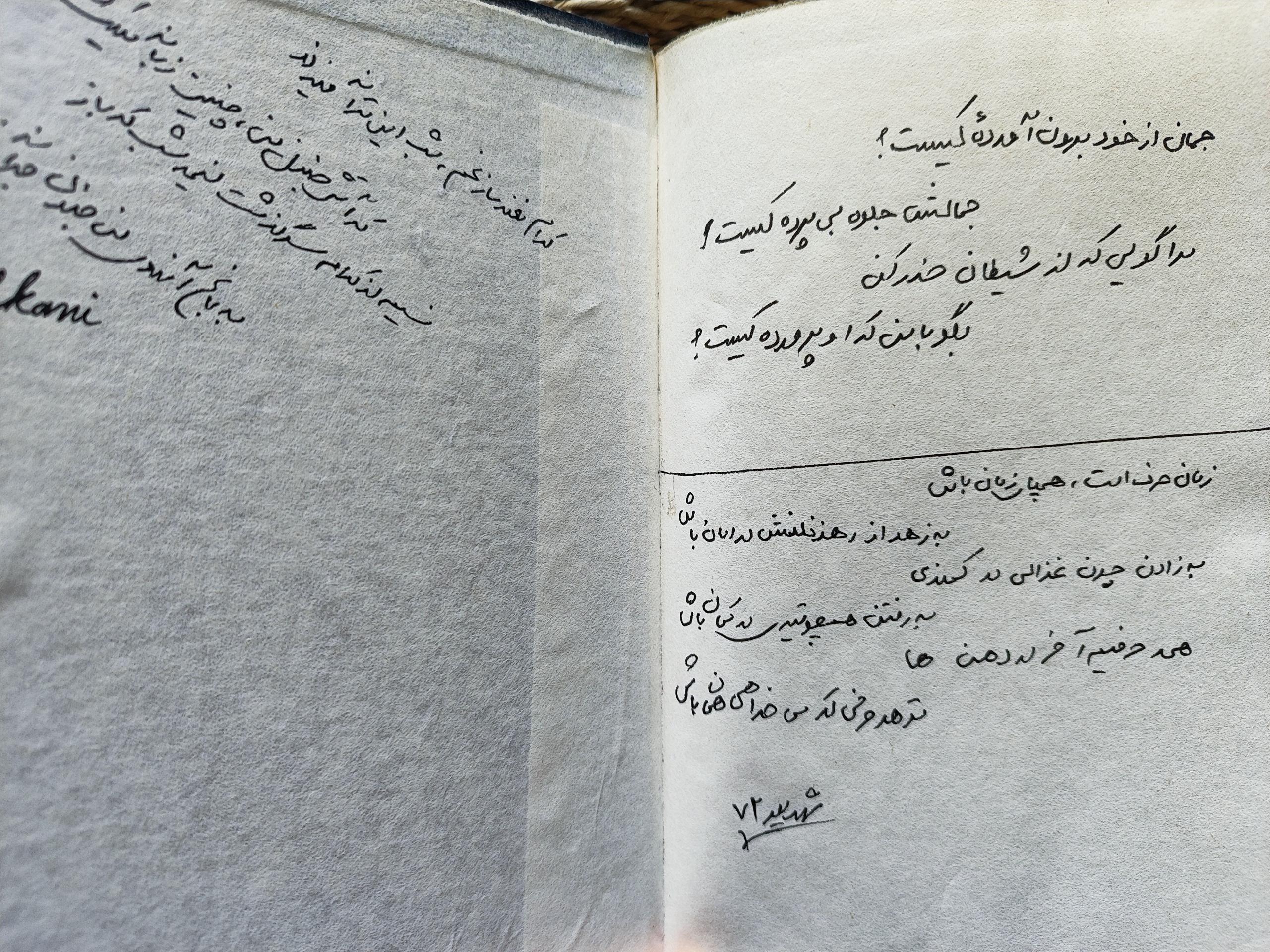 کتاب کاملا تمیز و سالم و ورق نخورده است. فقط در دو صفحه آخر با خودکار شعر نوشته شده که عکس آن موجود است