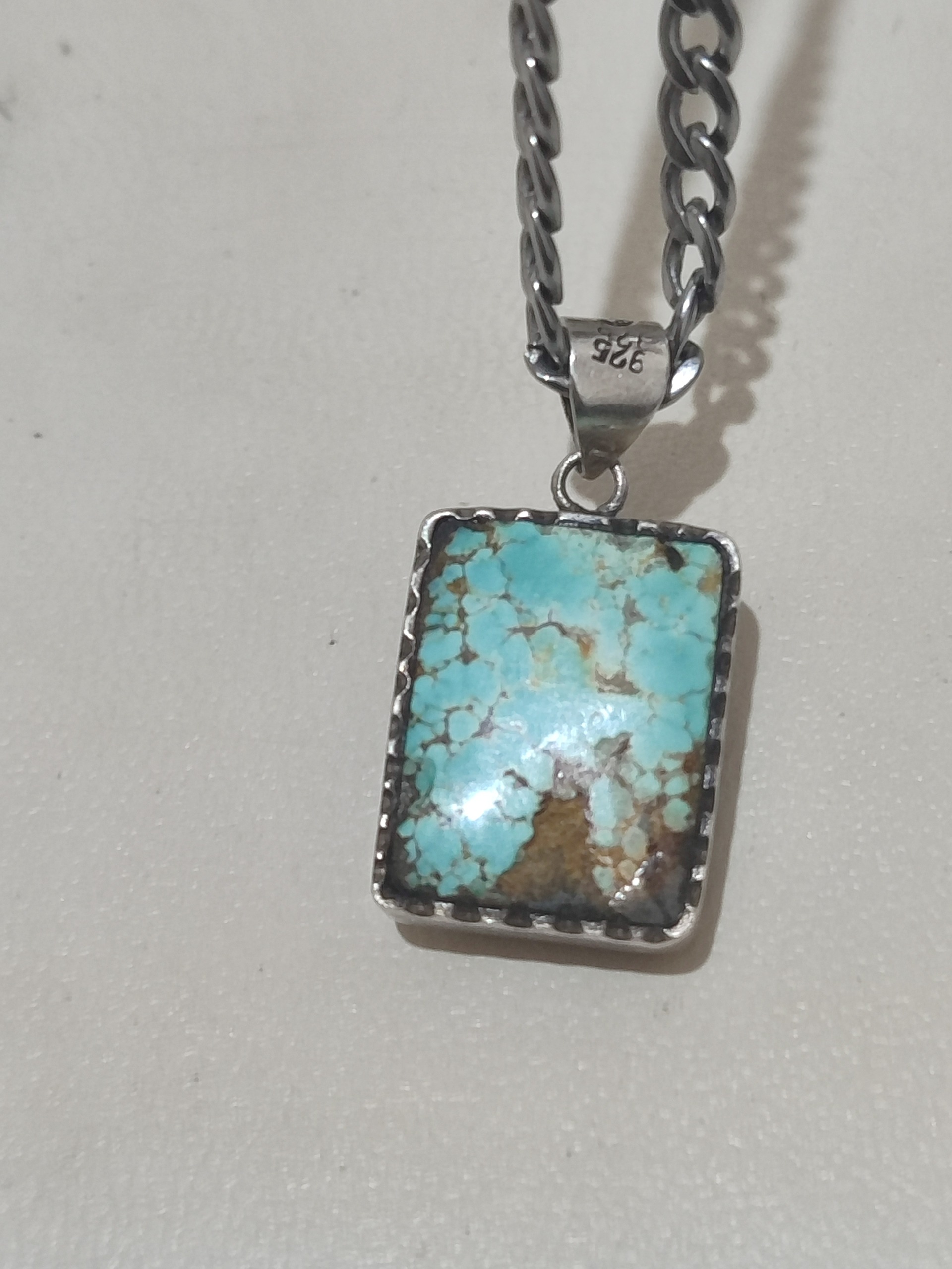 گردن آویز و پلاک گردنی نقره عیار 925 با سنگ فیروزه اصل نیشابوری خوش رنگ آسمانی به شرط اصالت . بدون زنجیر