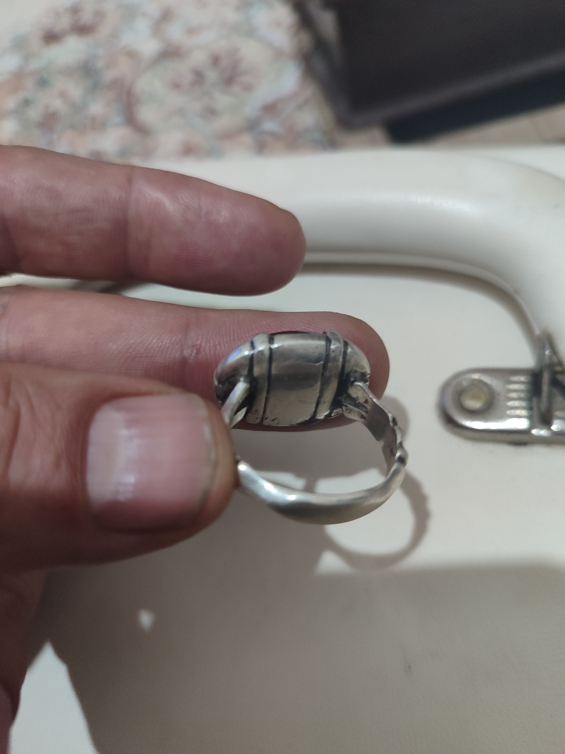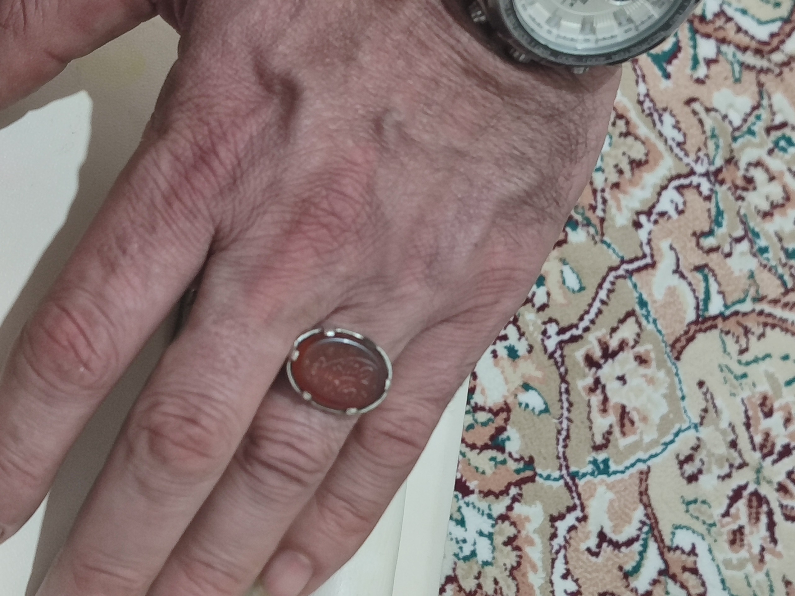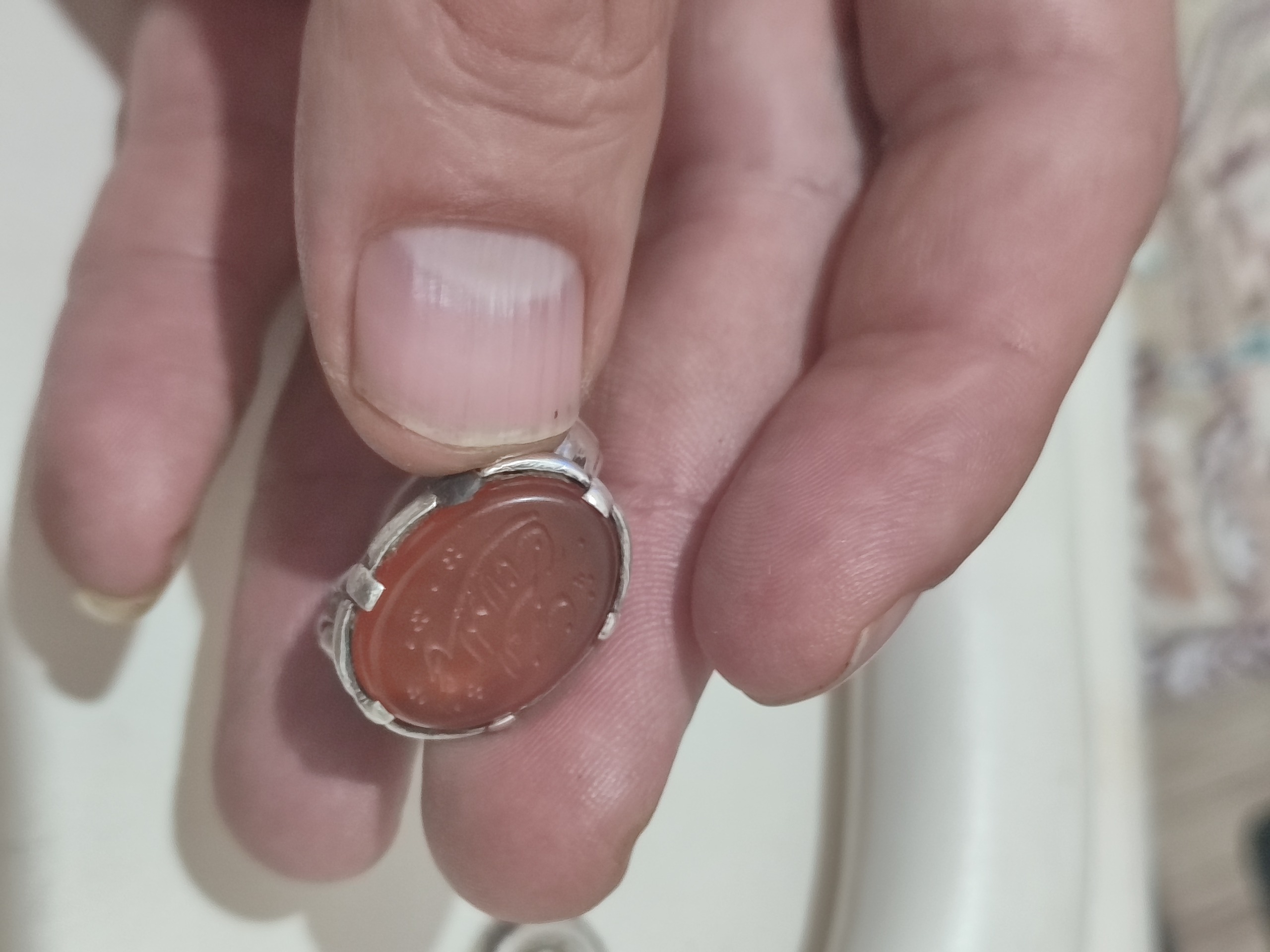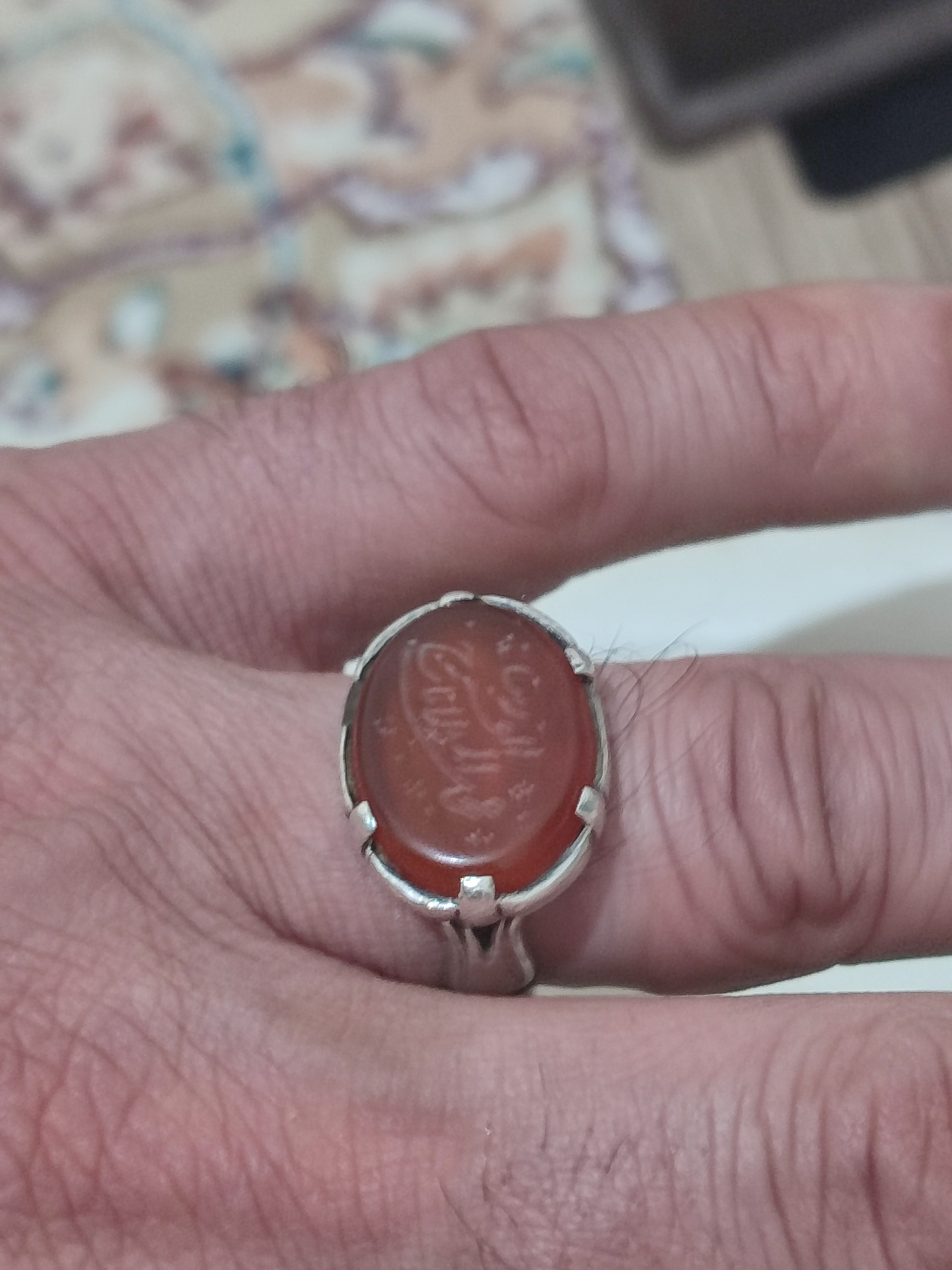 انگشتر نقره عیار 925 با عقیق یمنی اصل و ذکر دوعای خطی روی عقیق و خرز دار پشت بسته 14 گرم