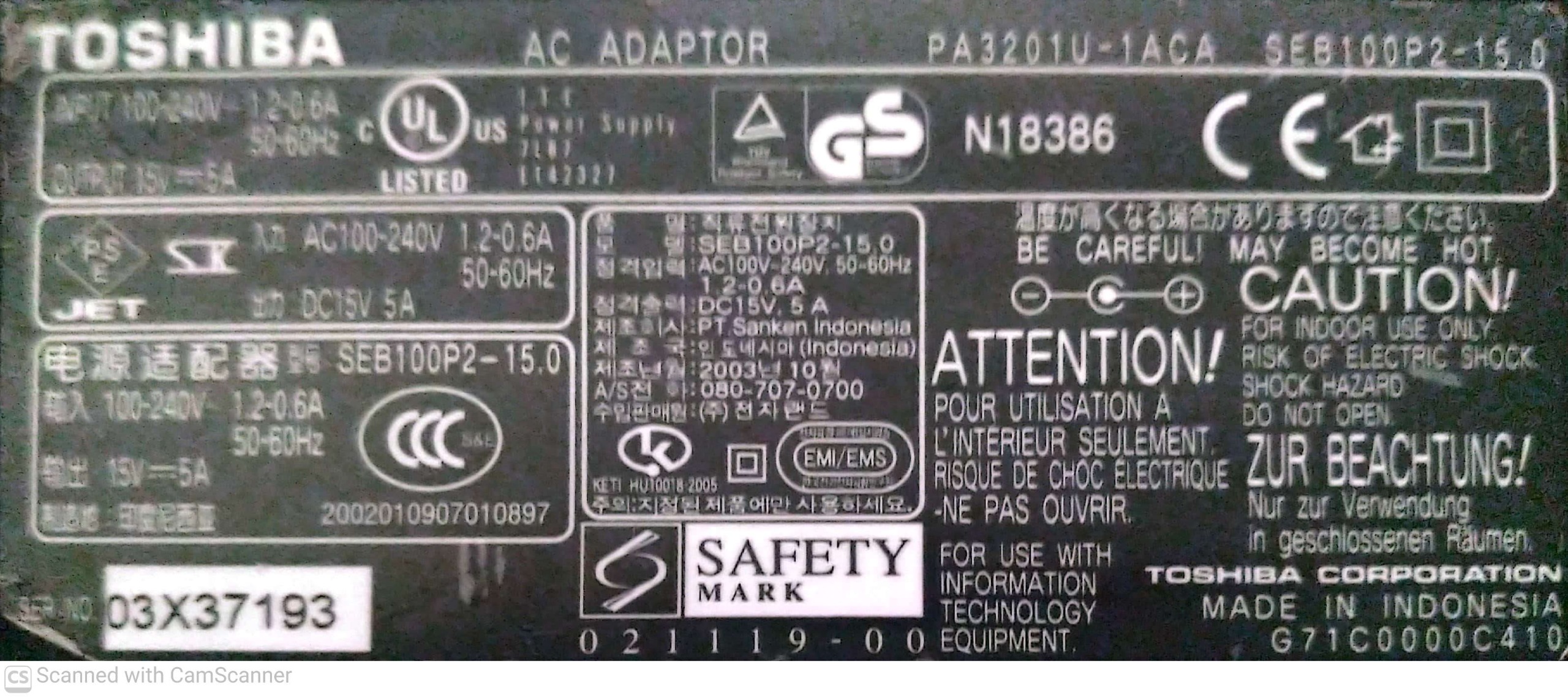 | شارژر مخصوص شرکت | توشیبا - Toshiba |