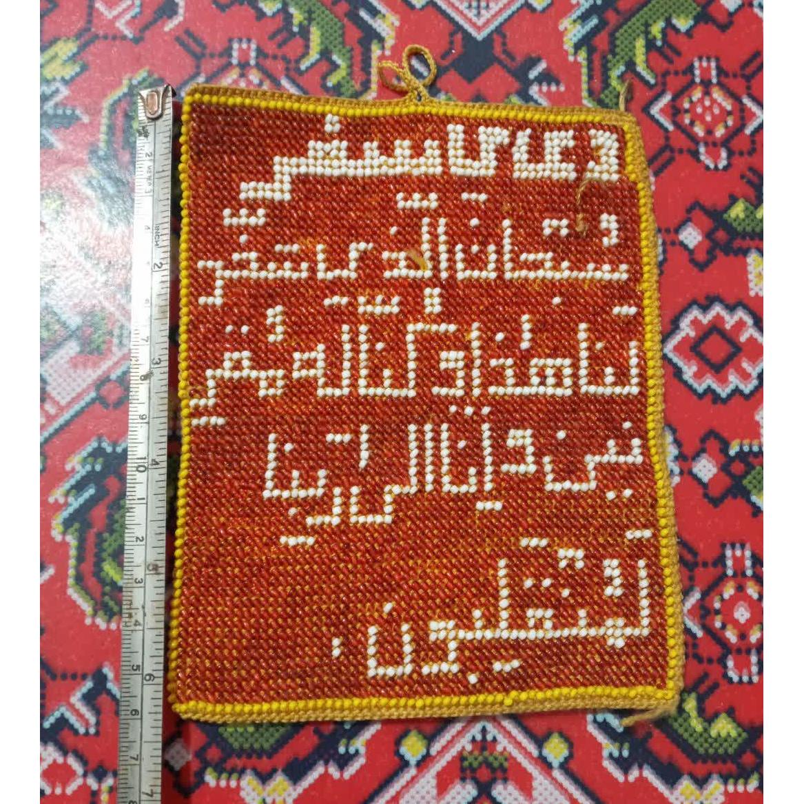 آویز قدیمی منجوق دوزی بسیار زیبا و چشم نواز مزین به دعای سفر.مناسب برای کلکسیون و یا استفاده...در گذشته از این آویز برای کامیون و یا اتوبوس استفاده میکردن...