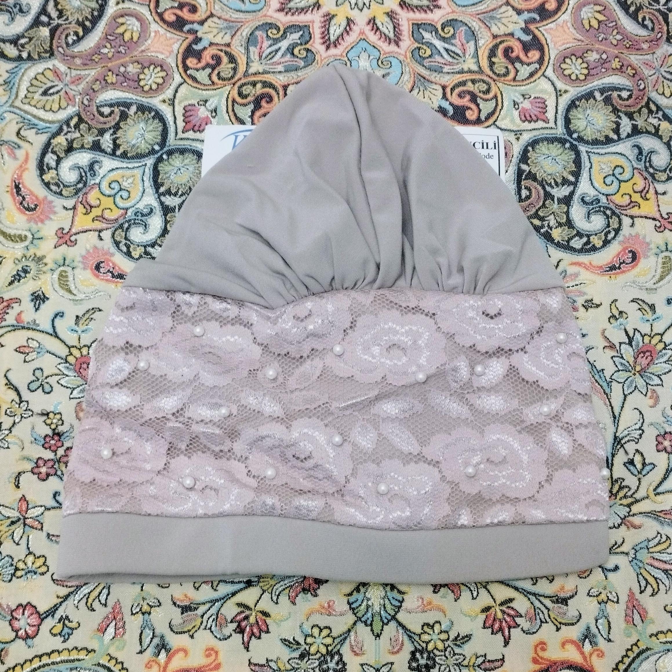 توربان کلاه حجاب / گیپور کارشده / رنگ کرم / ترکیه