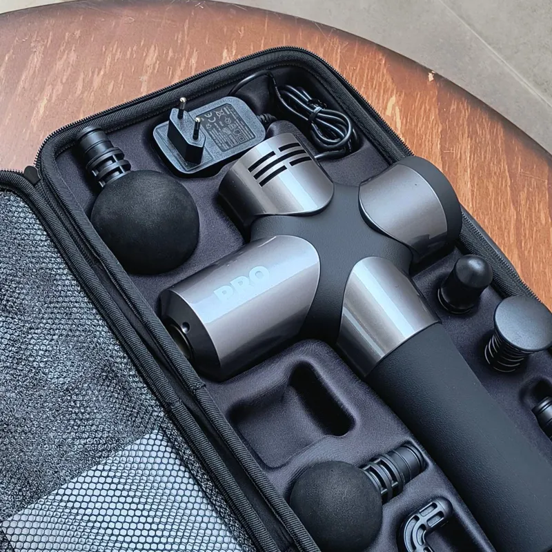 - تفنگ ماساژ Pro کاملاً در کیف عملی همراه با شارژر و 6 سر ماساژ قرار می گیرد. علاوه بر این، تفنگ ماساژور تنها 1.2 کیلوگرم وزن دارد و میتوان آن را به راحتی به محل کار/سالن ورزشی یا هنگام مسافرت برد