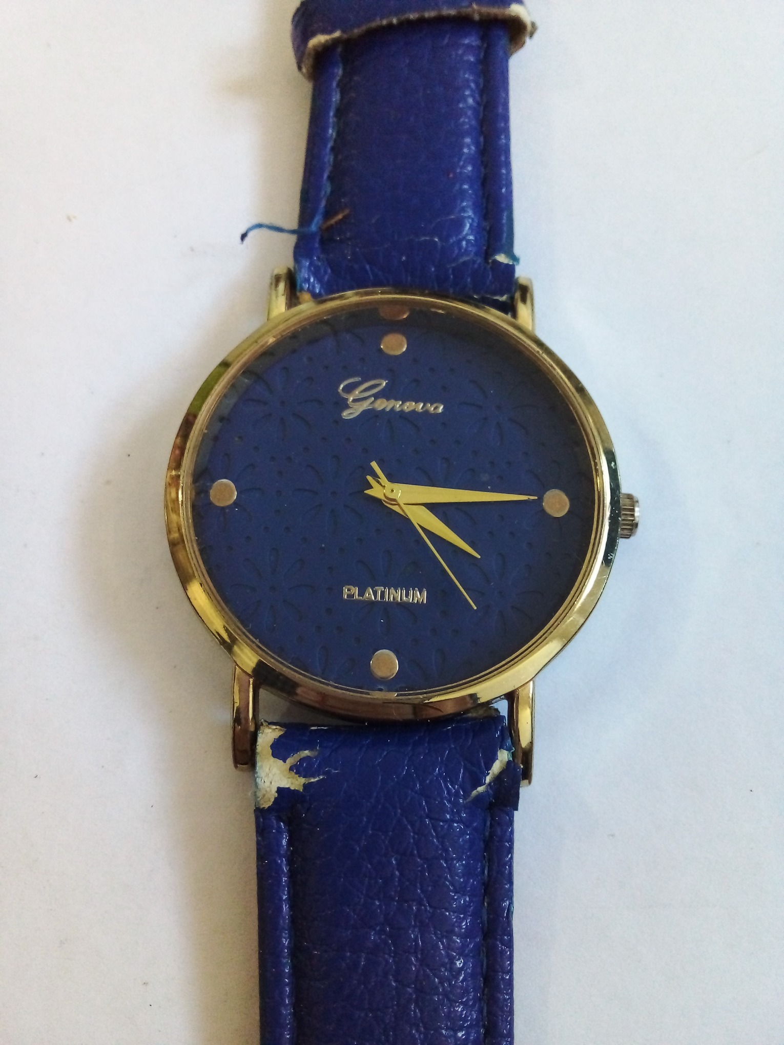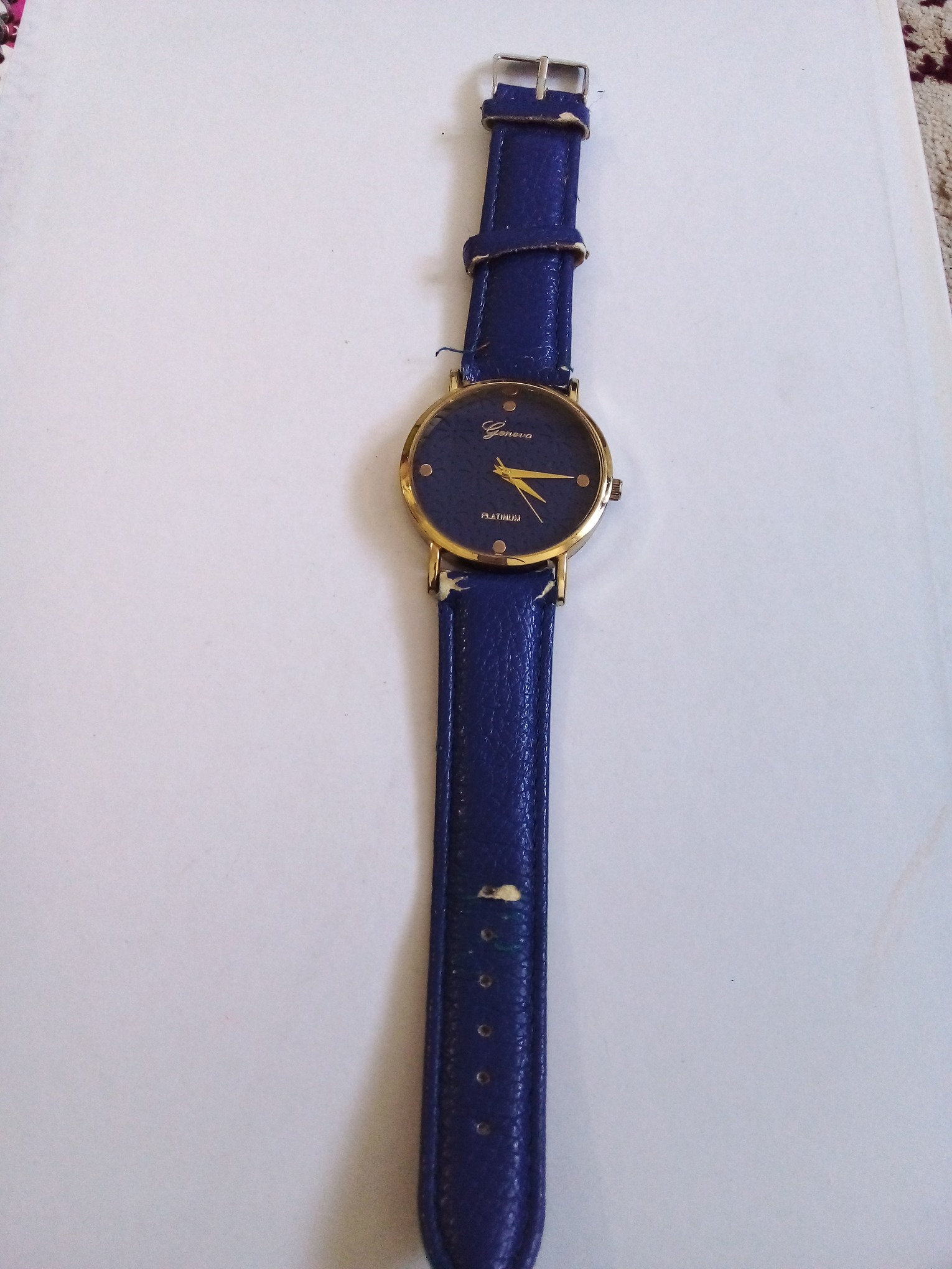 درود وروز بخیر خدمت عزیزان کاربر و سایت محترم ایسام . ساعت مچی مردانه جنیوا با بند ابی کاربنی وصفحه نمایش بسیار زیبا و سرمه ای رنگ دقیقا هر انچه که در عکسها میبینید . بند ساعت تقریبا کهنس . عزیزان خریدار قبل از اقدام به خرید لطفا وحتمن عکسها را ببینید