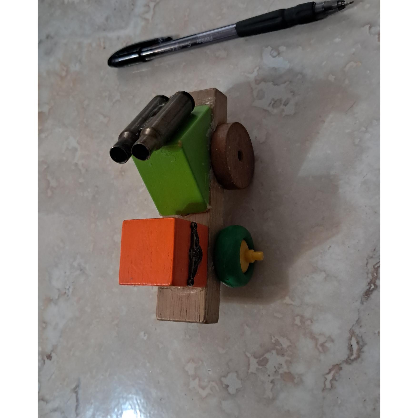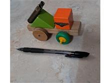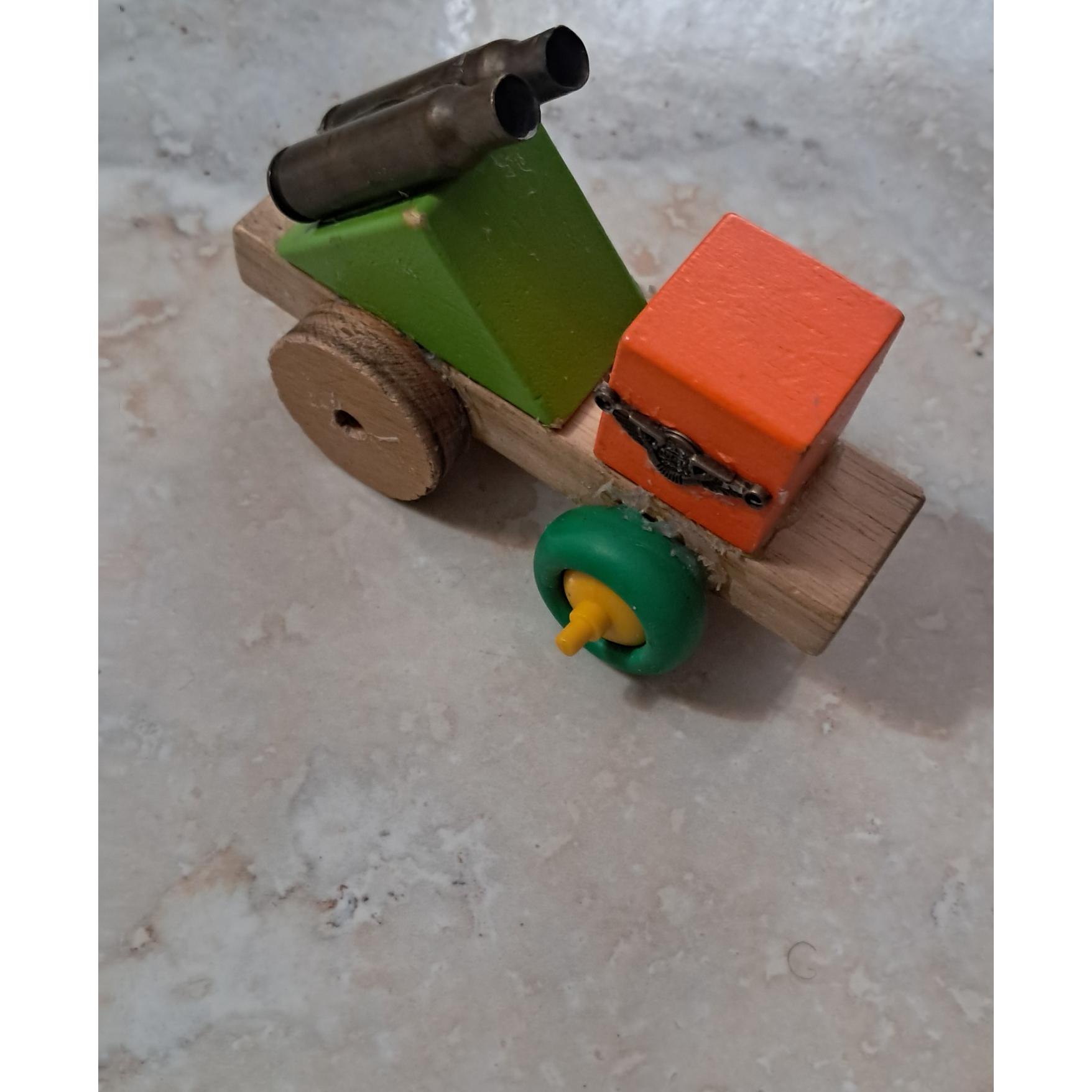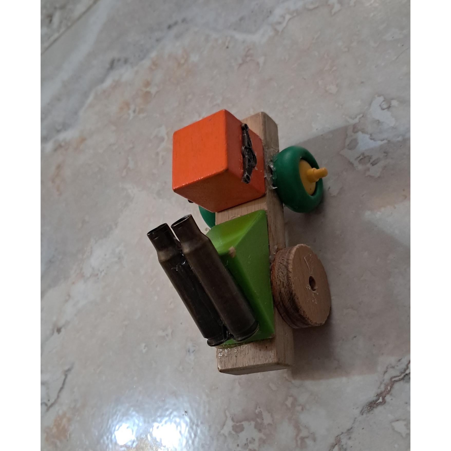 ماکت تزئینی ماشین مسلح چوبی با دو پوکه فشنگ یادگار جبهه و چرخ های دکوری ثابت دست ساز طبق عکس ها