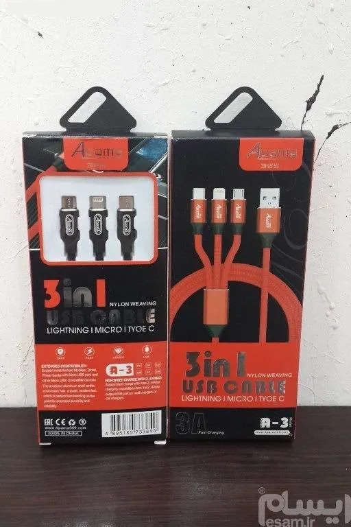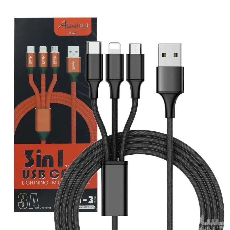 کابل شارژ اورجینال 3سر روکش دار Apama-369 A-3