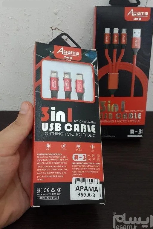 کابل شارژ اصلی سه سر آپاما 369 مدل A3