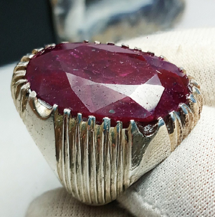 انگشتر نقره یاقوت سرخ معدنی و ناب