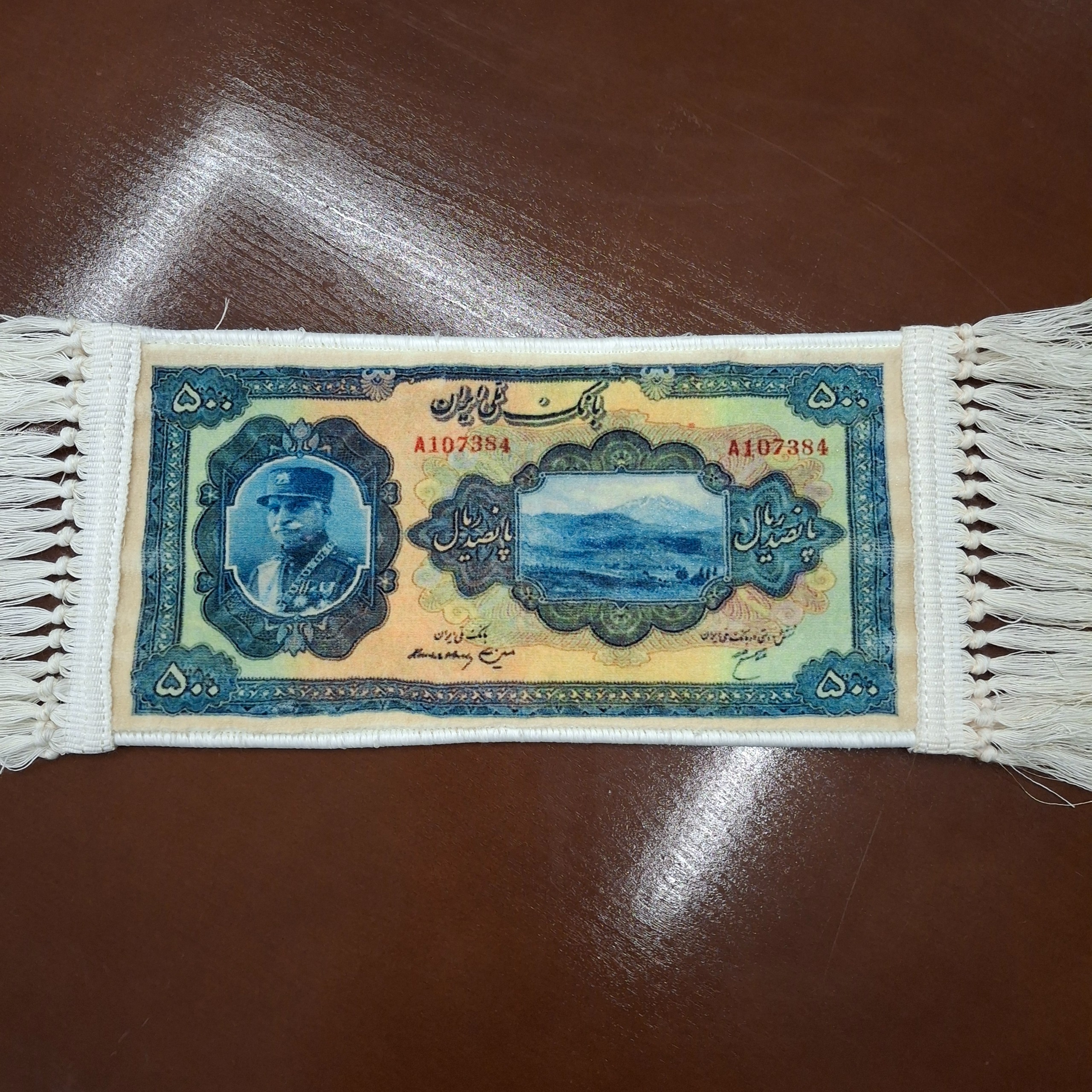 قالیچه زیبای ماشینی ابریشمی(ابریشم مصنوعی)طرح اسکناس 50 تومنی کلاهدار