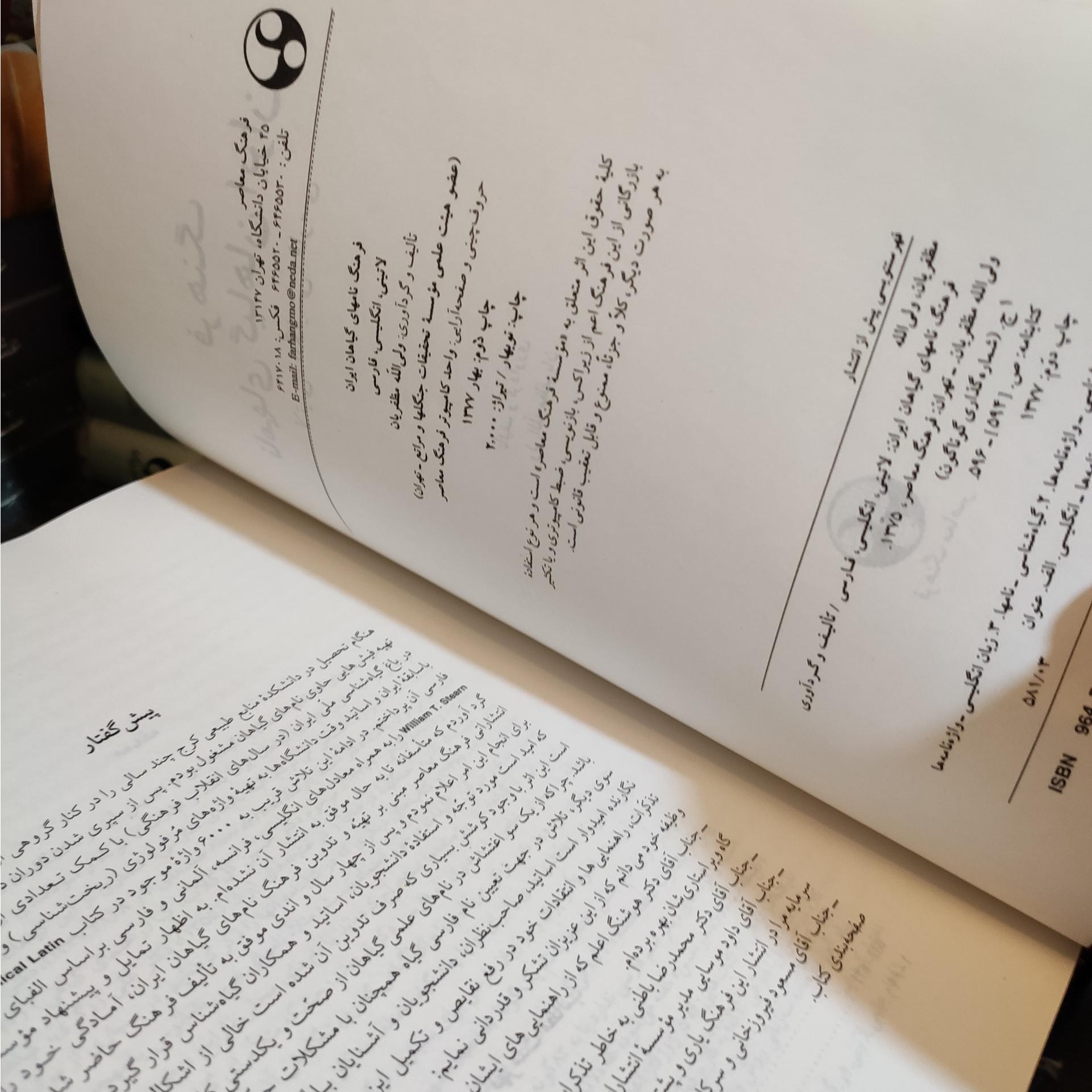 فرهنگ نامهای گیاهان ایران ولی الله مظفریان