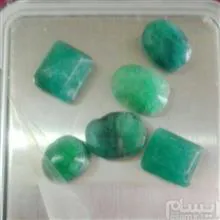 سلام دوستان عزیز 5عدد زمرد معدنی هند بسیار زیبا با تراش مربعی وگرد .فقط یکی از زمردها یک گوشه اش ترک خورده( خیلی کوچک