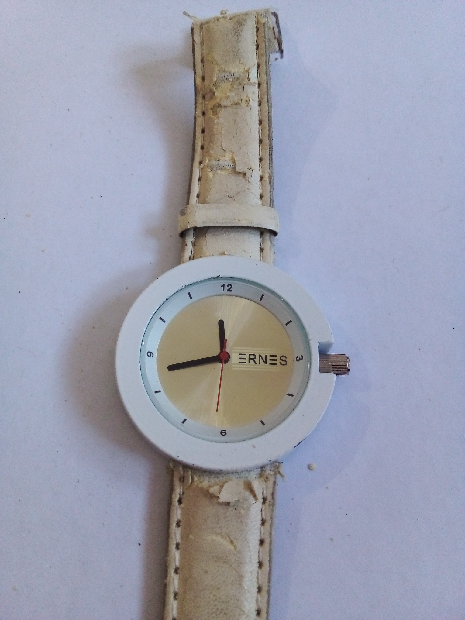 درود وروز بخیر خدمت عزیزان کاربر و سایت محترم ایسام . ساعت مچی دخترانه معیوب ثانیه شمار کار میکند ولی عقربه ها شل هستند . بند ساعت کهنس . قاب بدنه گرد وسفیدرنگ وصفحه نمایش شیری . عزیزان خریدار قبل از اقدام به خرید لطفا وحتمن عکسها را ببینید وتوضیحات