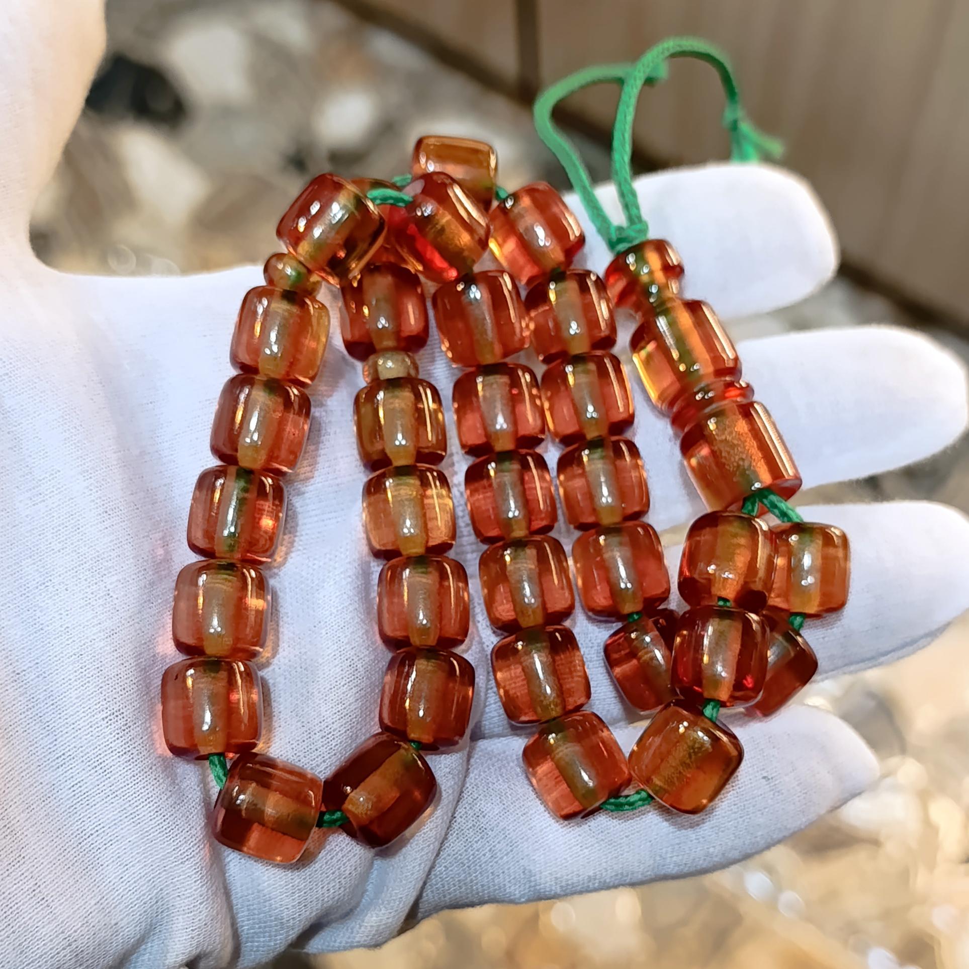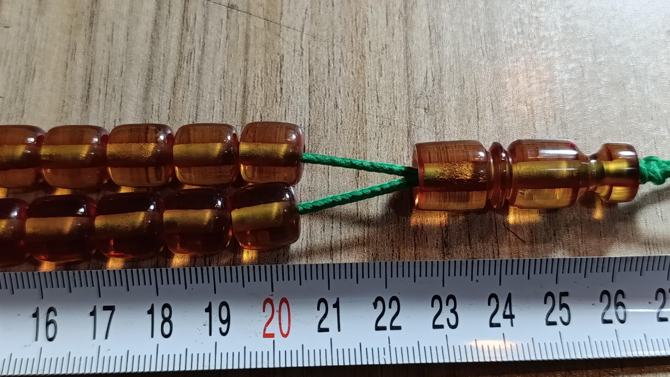 درود بر شما بزرگواران ( وزن با سربند حدودا 52.70 گرم سایز 12 )...سندلوس موادی است که از زمان جنگ جهانی دوم به بعد در کشور آلمان برای صنعت ..اسلحه سازی ..مصالح ساختمانی ..و غیره.. به دلیل نسوز بودن آن و کاربردهای زیادش ساخته شد که به شکل کتاب هایی به اندازه های مختلف وارد بازارهای جهانی شده و کاربردهای زیادی دارد و کشور آلمان هرگز طرز تهیه آن را به هیچ کشوری نداده و در کشور های مسلمان از سندلوس به عنوان تسبیح و چوب سیگاری و دسته چاقو و تاسو غیره ..استفاده میشود ..متاسفانه در کشور ایران بعضی افراد سود جو برای اینکه سود بیشتری براشون حاصل بشه سندلوسهای قدیمی رو صمغ مینامند و جدید ها رو شمش و مواد .. که کاملا اشتباه است..سندلوس از بدو پیدایشش مواد بوده و الان هم تولید میشه ..سوال اینجاست ..اگر سندلوس صمغ درخت است چرا نسوز است؟؟ مگر صمغ درخت نمیسوزد ؟؟..واقعا باید کمی فکر کنیم و به نتیجه برسیم ..چالشی که ایجاد شده اینجاست که کشورهای پاکستان و ویتنام و هند مدعی هستند که سندلوس میسازد ولی کاملا نتوانسته به مواد کلی دستیابی داشته باشد و سندلوسهای این کشورها از نظر کیفیت بسیار پایین هستند ..امروزه در کشور آلمان با سهامداران و مشارکت مسلمانان کشور ترکیه سندلوس تولید میشود و تولید آن متوقف نشده است ..برای شناخت مرغوبیت سندلوس بشاش بودن و زلال بودن و نسوز بودن آن ملاک است نه چیز دیگری ..سندلوسها به مرور زمان وقتی کهنه میشوند بوی خاصی میدهند که نشانگر قدمت اون میشه ..در تراشهای جدید هم به مرور زمان این مورد محقق میگردد و هیچ فرقی میان سندلوسهای قدیمی و جدید وجود ندارد و البته با پیشرفت تکنولوژی سندلوسهای جدید از نظر کیفی حتی بهتر از قدیمیها میباشند ....ارادتمند شما شهرامفر