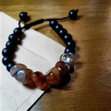 دستبند عقیق معدنی سلیمانی قهوه ای همراه مهره های سیاه رنگ اونیکس کار شیک مناسب هدیه و استفاده شخصی برای علاقه مندان به خواص سنگ ها به قیمت هزارتومان درخدمتم